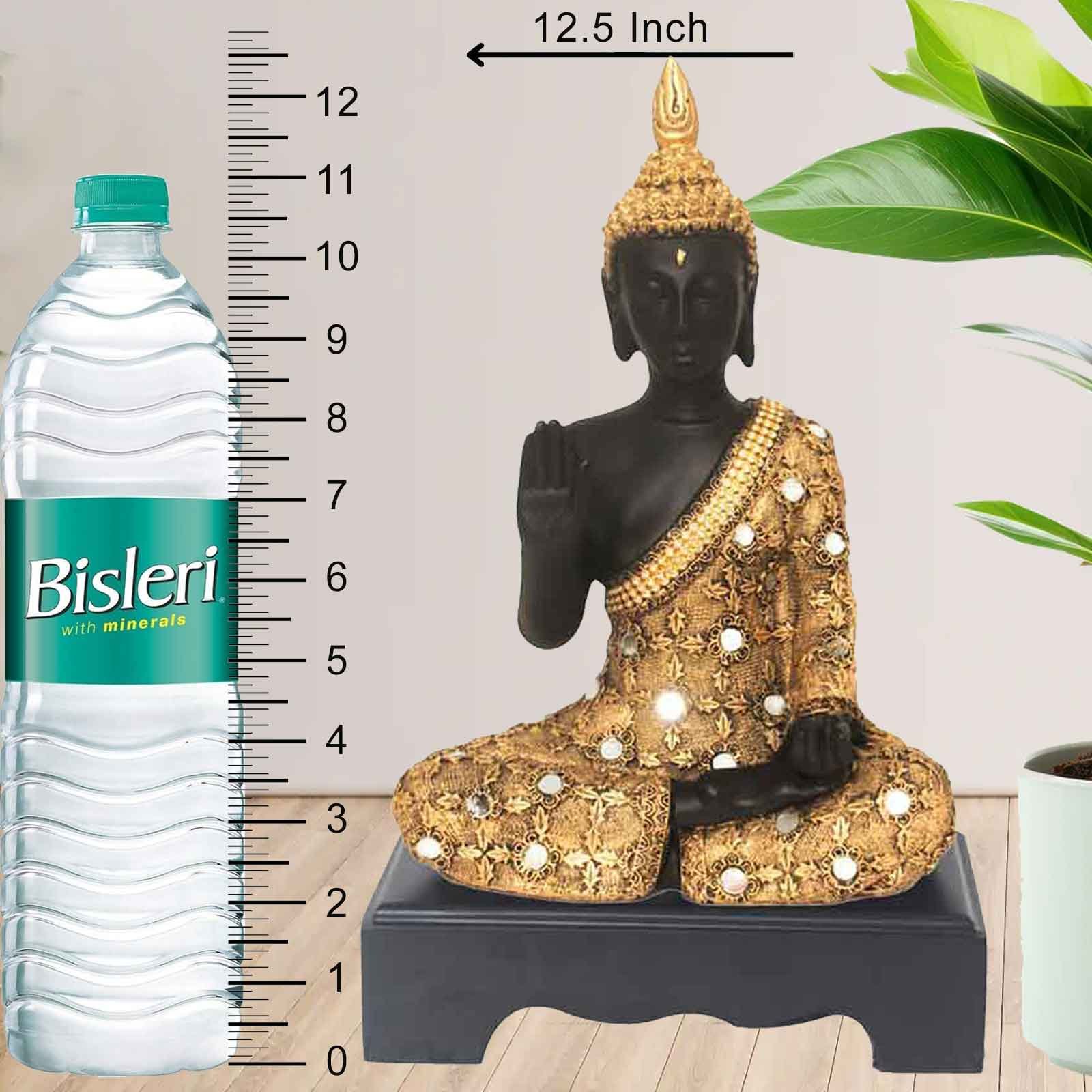 Aashirwad Buddha figures for home decor Jewellery Decorated with Wooden Base 32 cm G57GW1687KGNMZ