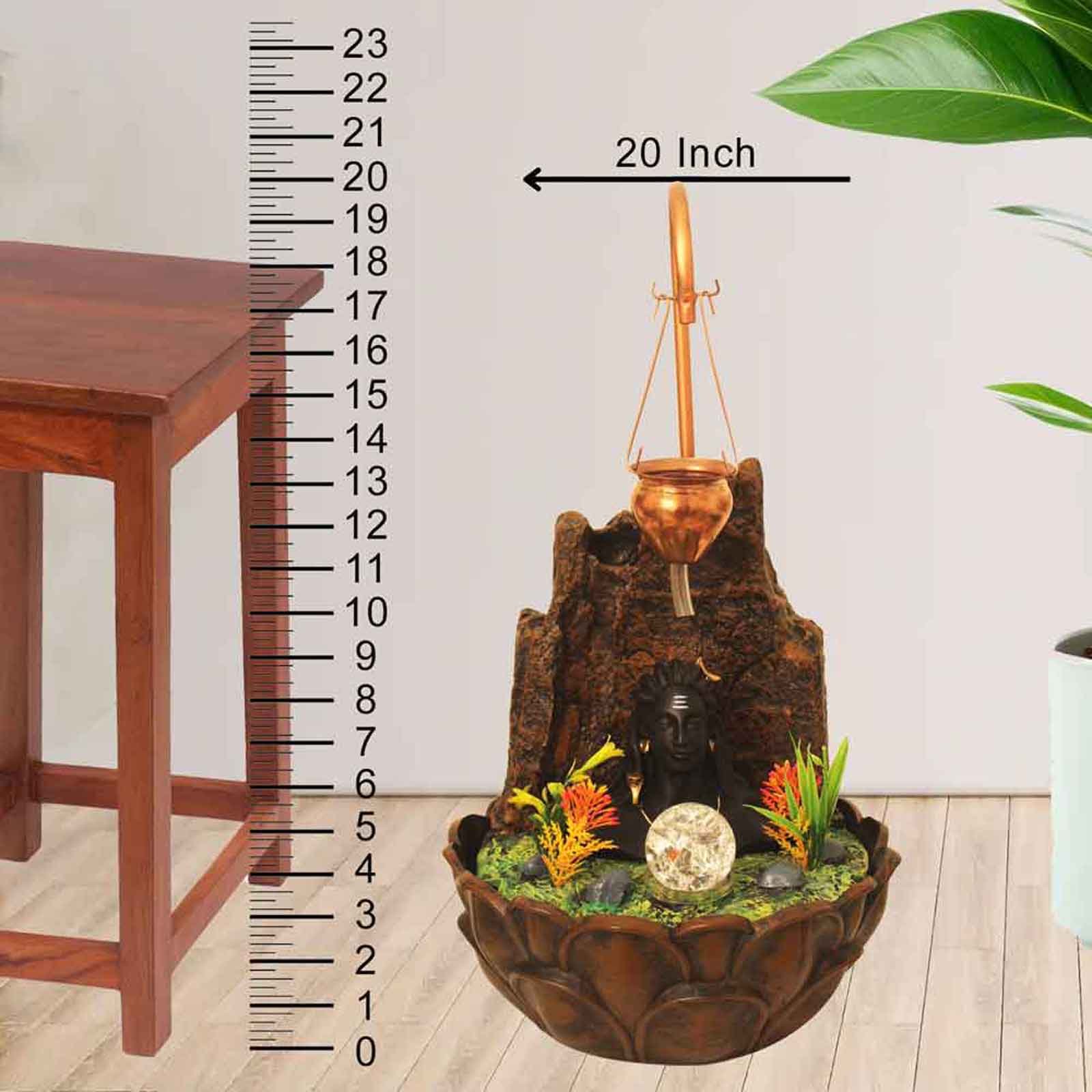 This beautiful Lord Adiyogi Shiva indoor water fountain with crystal ball is a perfect showpiece for home d?cor. It not only looks elegant but also brings peace and positivity to your space. The gentle sound of flowing water creates a calm and relaxing environment. It makes a thoughtful gift for housewarmings, birthdays, office openings, weddings, and festive occasions. Ideal for your home, office, showroom, or hotel, this fountain adds charm and a touch of spirituality to any place. As a gift, an indoor water fountain is not only visually appealing but also symbolizes harmony and balance. Water fountain is best ideal decorative gift choice as birthday, housewarming, office / shop inauguration, New Year, Wedding, Corporate Diwali gifts or any occasion.