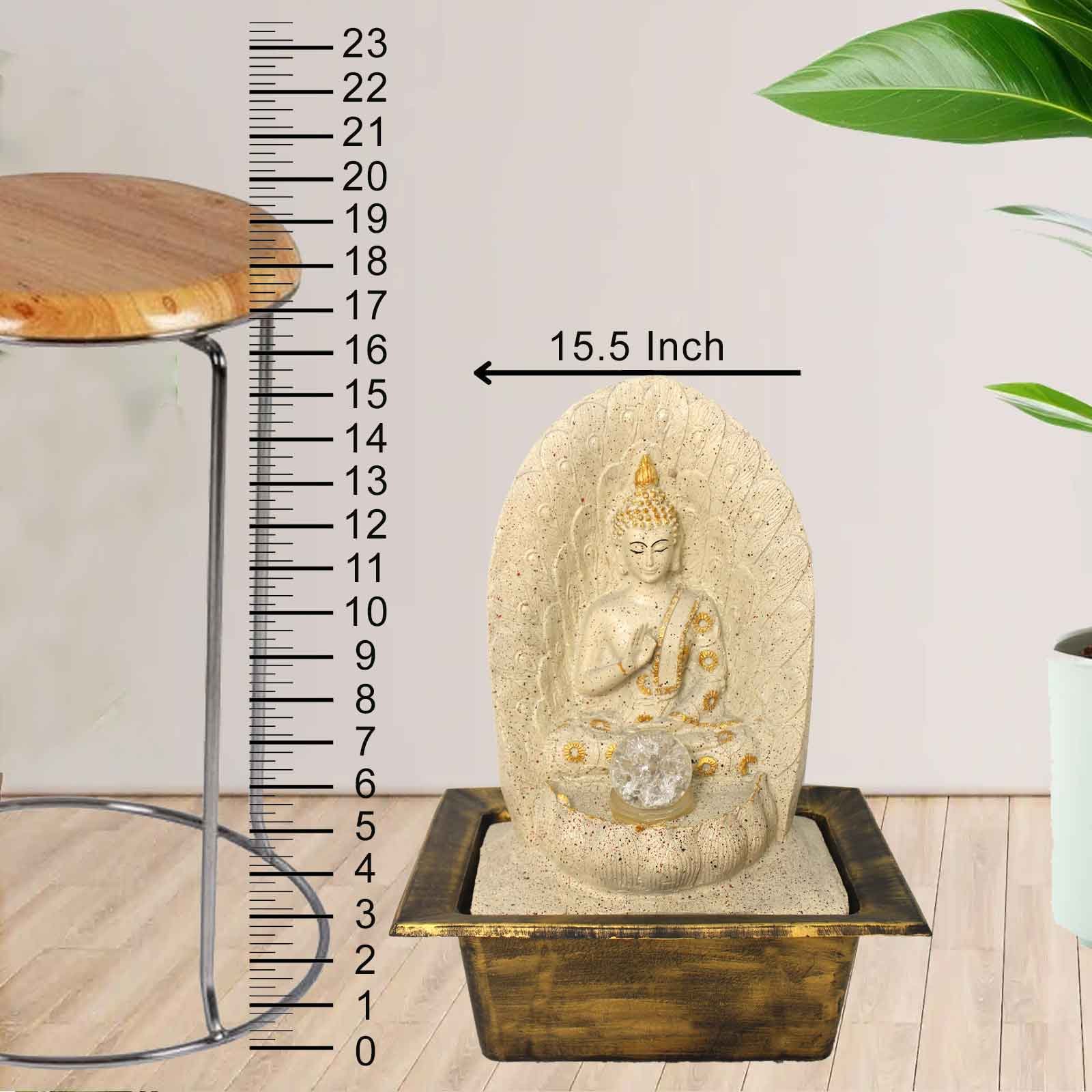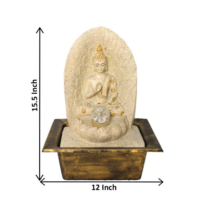 Ancient Buddha water fountain for home indoor With Led Light & Crystal Ball - sandstone Finish 39 cm G57GX0622IGDMX