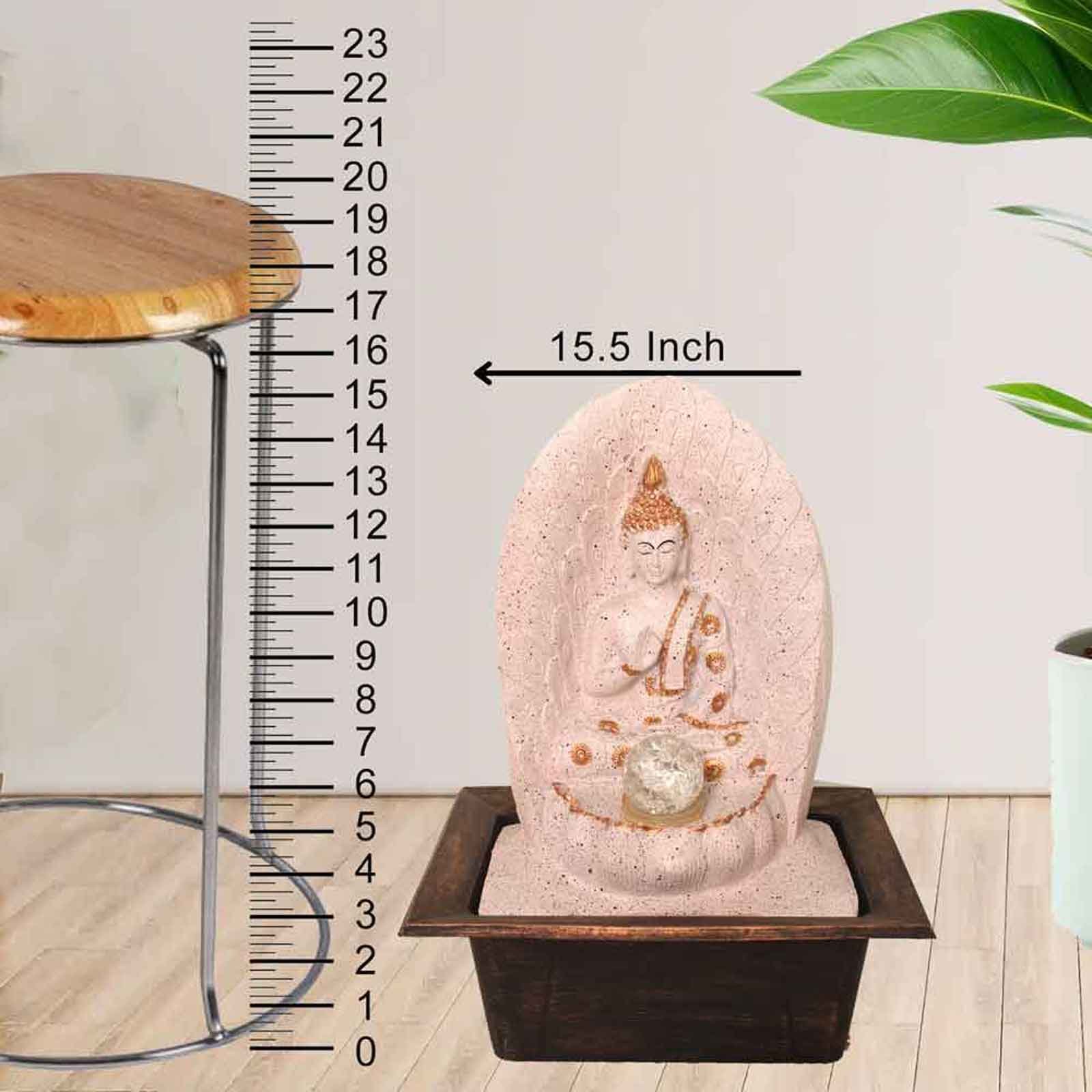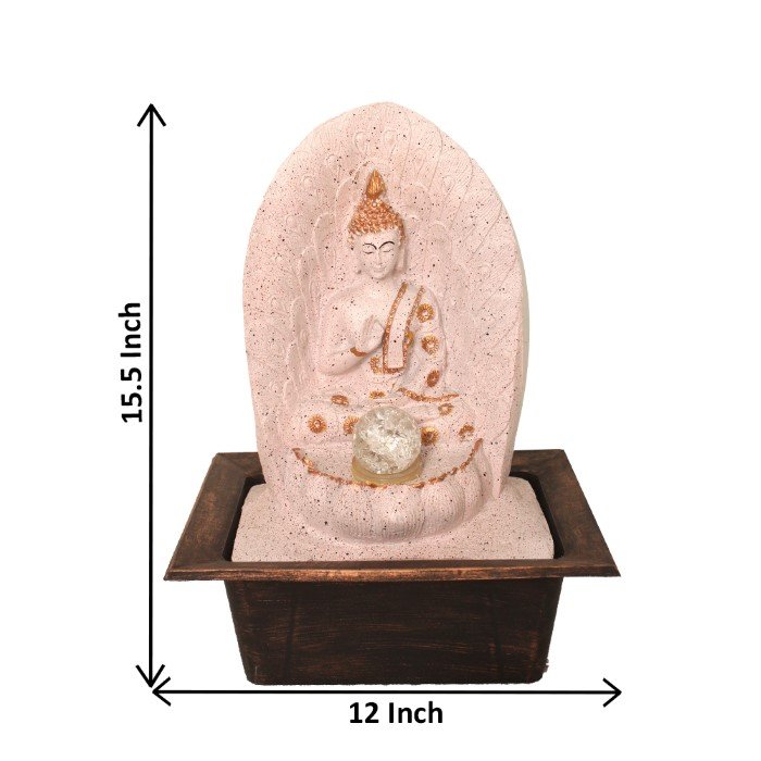Ancient Buddha water fountain for home With Led Light & Crystal Ball - sandstone Finish 39 cm G57GX0622PCDMX