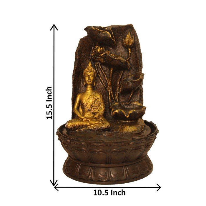 Magical Buddha fountain showpiece With Led Light - Metalic Antique Finish 41 cm ...