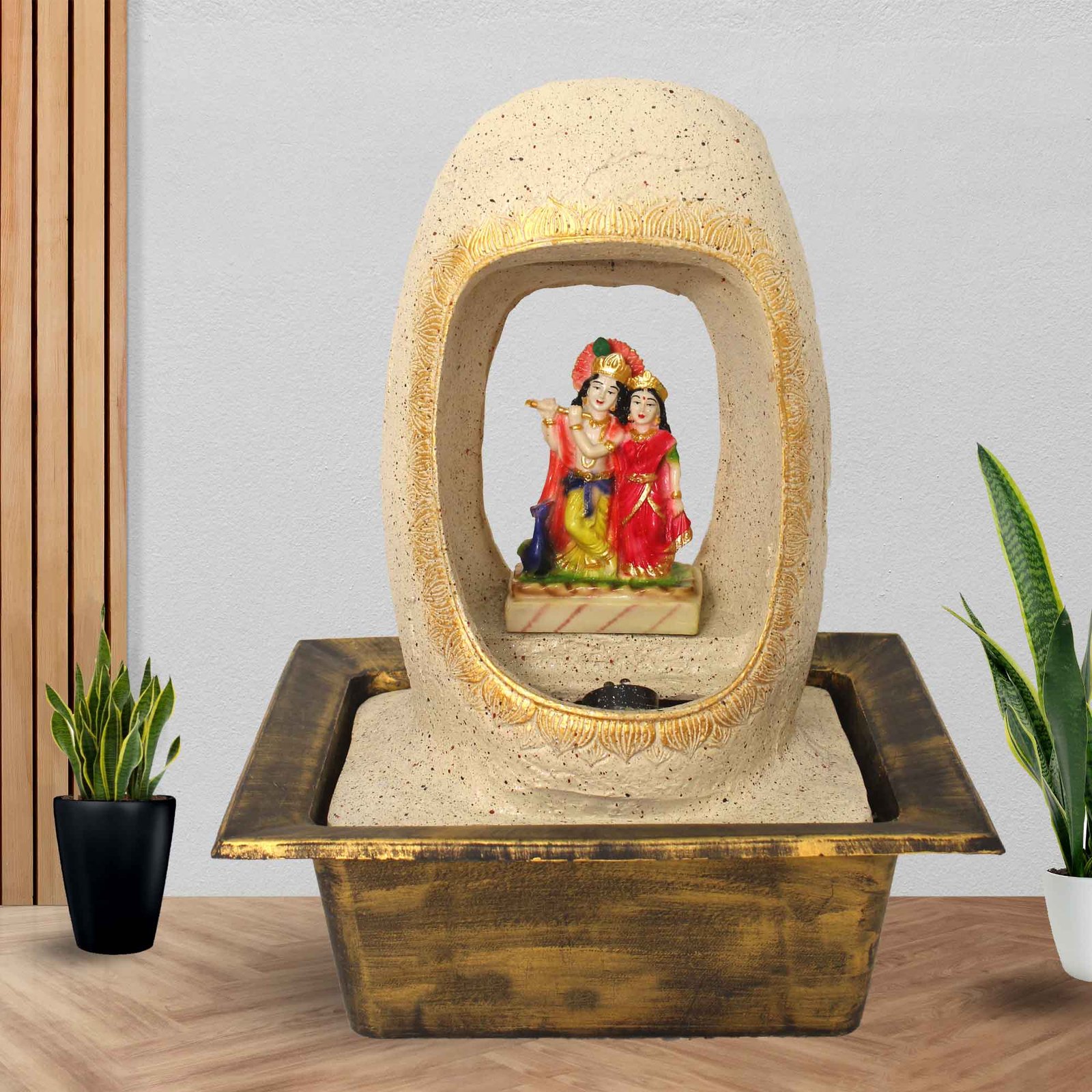 Handicraft Radha Krishna indoor water fountain for home With Led Light - Metalic...