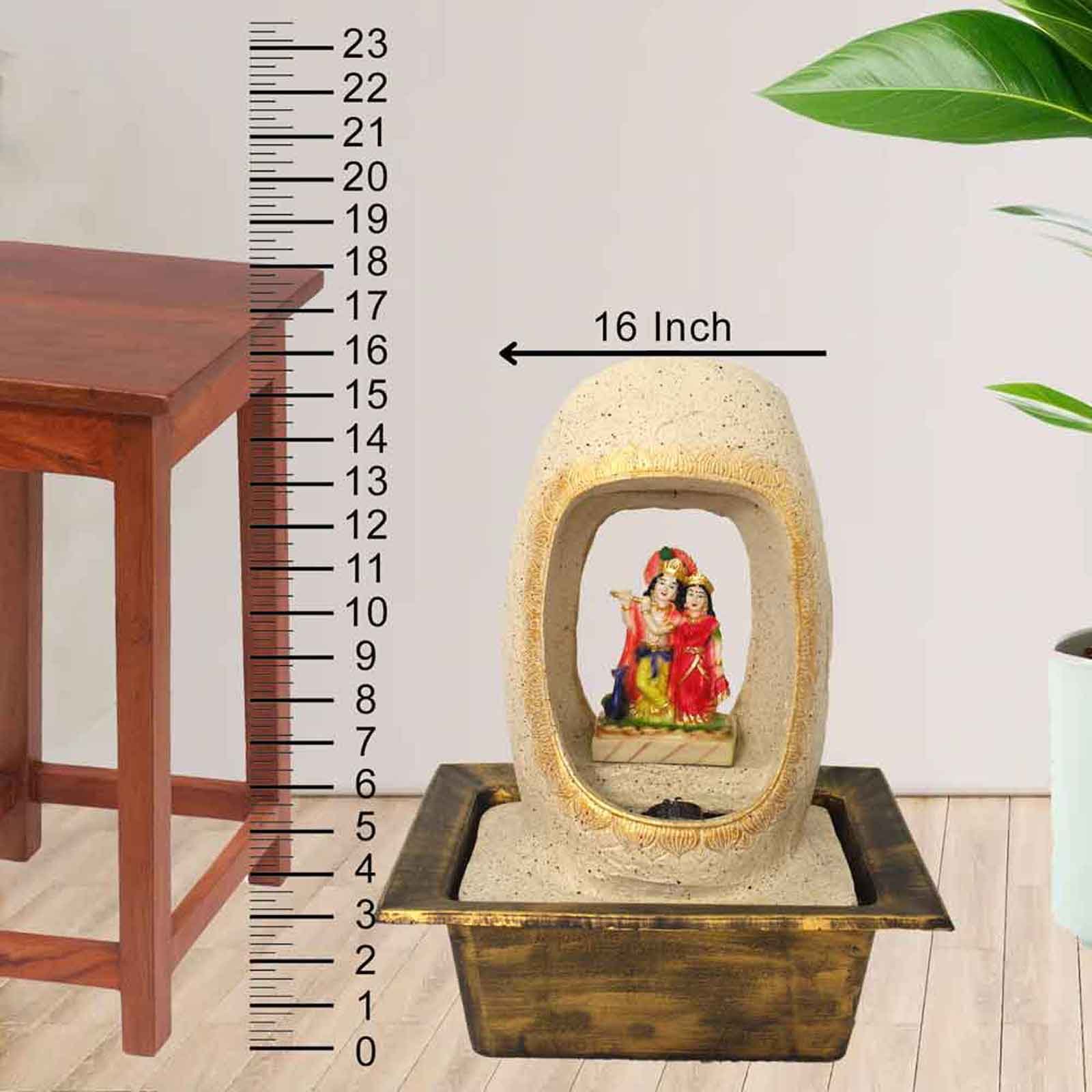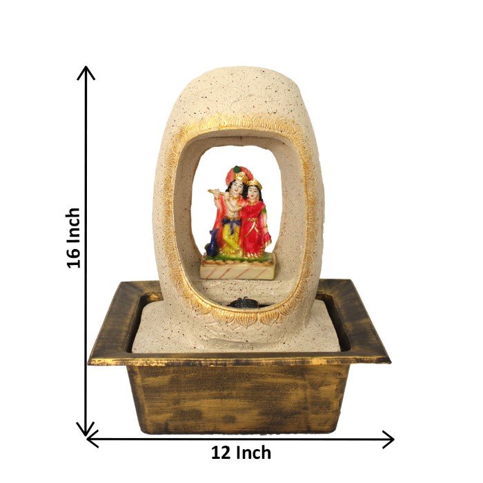 Radha Krishna indoor water fountain is a beautiful showpiece for home decor. This indoor water fountain not only looks great but also brings positivity to your space. Sound effect of water fountain helps create a positive and harmonious environment. As a home decorative water fountain, it adds a touch of elegance and peace to your living space. This Radha Krishna also makes for a wonderful decorative gift item for home decoration, ideal for housewarmings or special occasions. An indoor water fountain is best decoration and thoughtful gift. Whether placed in a living room, home, office, showroom, restaurant, hotel and wedding hall, the gentle sound of flowing water can enhance the beauty of area. As a gift, an indoor water fountain is not only visually appealing but also symbolizes harmony and balance. Water fountain is best ideal decorative gift choice as birthday, housewarming, office / shop inauguration, New Year, Wedding, Corporate Diwali gifts or any occasion.