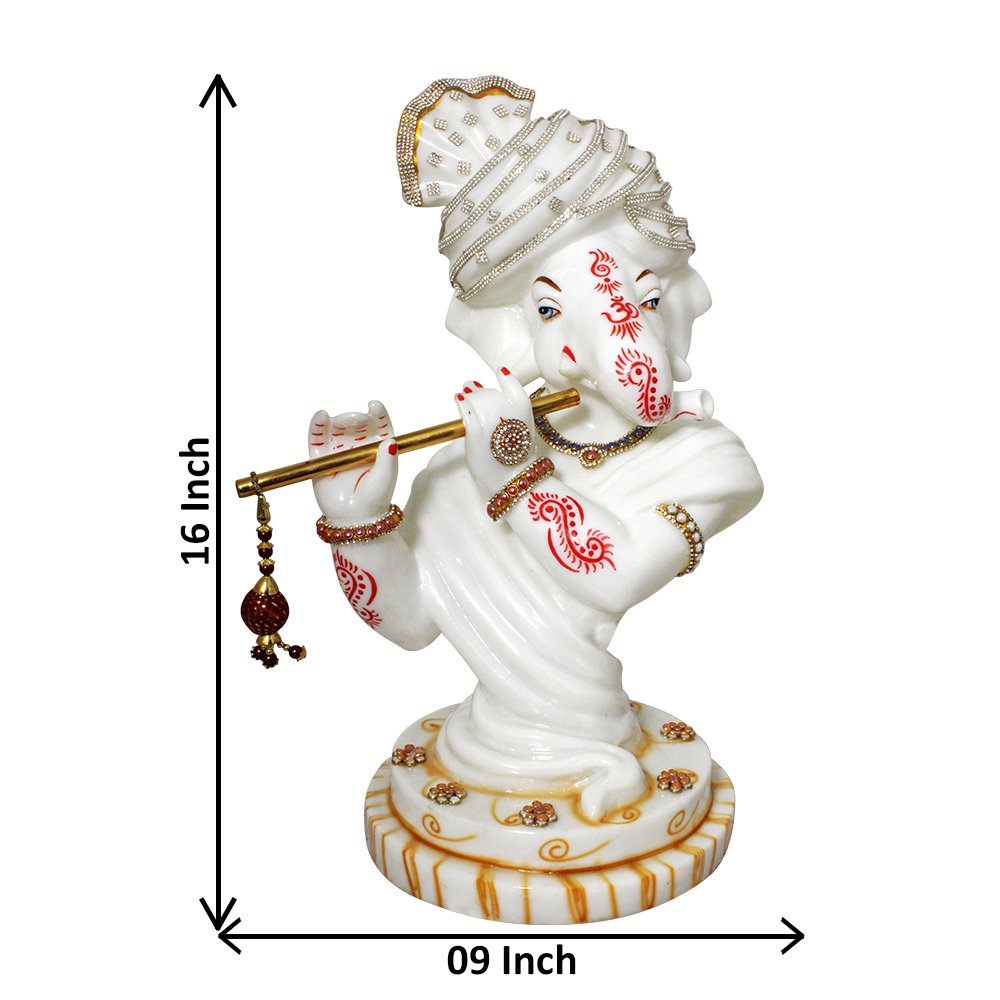 Make in India Bansuri Ganesha Statue is made by professional artisans using high quality row material. Great look with unfadable color. Showpiece direct from factory at wholesale price This Showpiece is easily cleanable by wet/Dry Cotton Cloth.