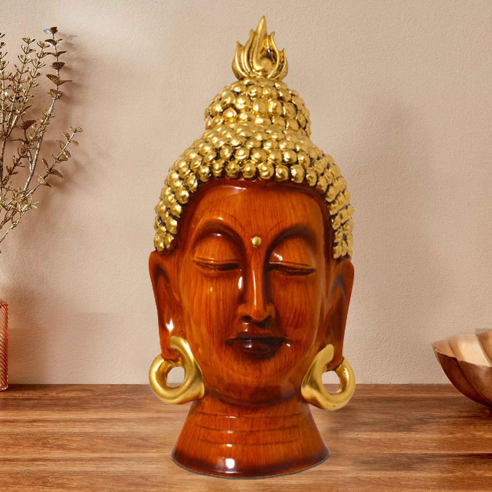 Polyresin Gautam Buddha Head showpiece for decoration Brass Antique Finish 38 cm...