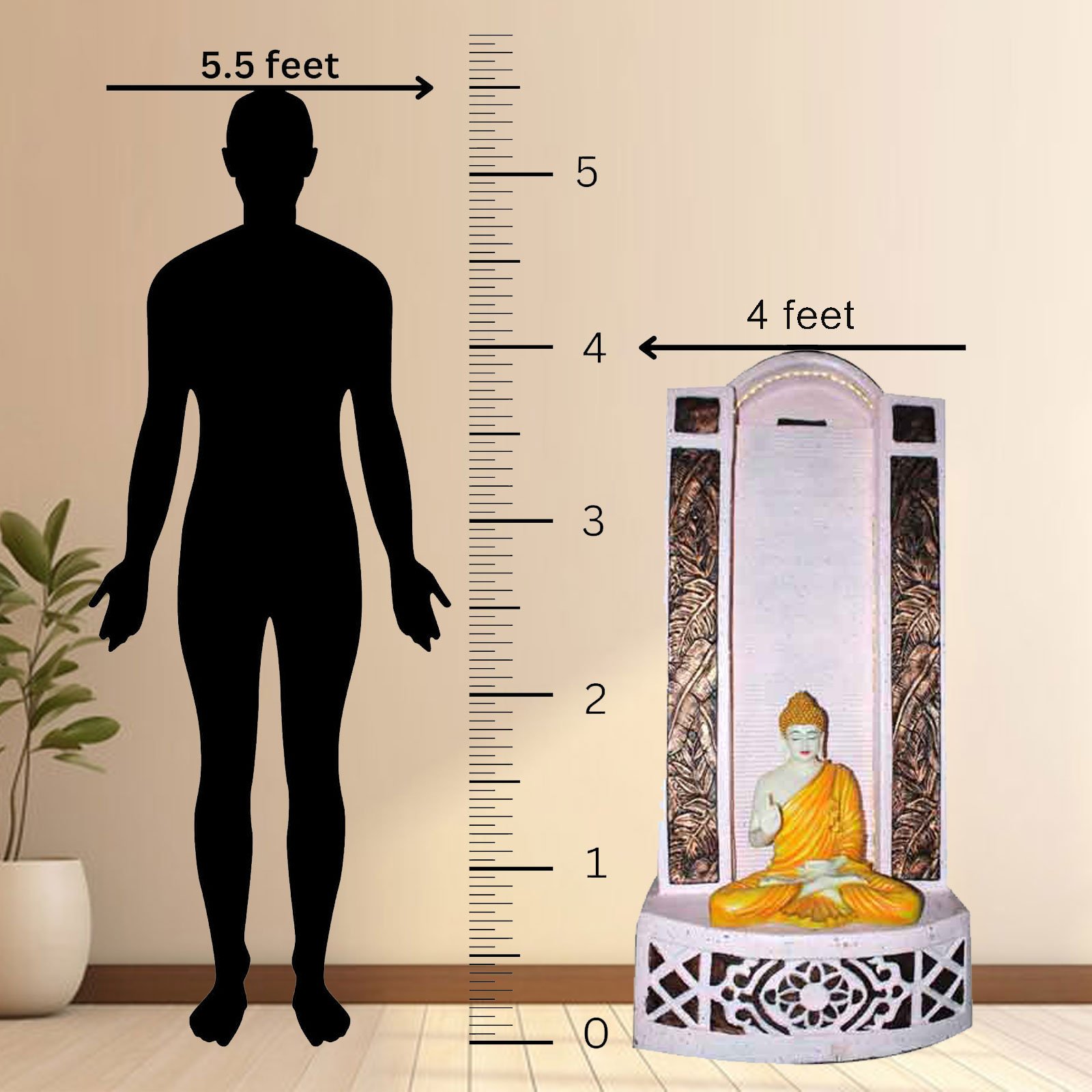 Lord Buddha indoor outdoor FRP Fiber water fountain is a beautiful showpiece for home decor. This indoor water fountain not only looks great but also brings positivity to your space. Sound effect of water fountain helps create a positive and harmonious environment. As a home decorative water fountain, it adds a touch of elegance and peace to your living space. This Lord Buddha also makes for a wonderful decorative gift item for home decoration, ideal for housewarmings or special occasions. An indoor water fountain is best decoration and thoughtful gift. Whether placed in a living room, home, office, showroom, restaurant, hotel and wedding hall, the gentle sound of flowing water can enhance the beauty of area. As a gift, an indoor water fountain is not only visually appealing but also symbolizes harmony and balance. Water fountain is best ideal decorative gift choice as birthday, housewarming, office / shop inauguration, New Year, Wedding, Corporate Diwali gifts or any occasion.