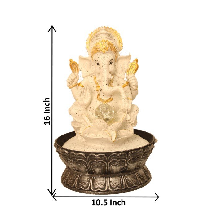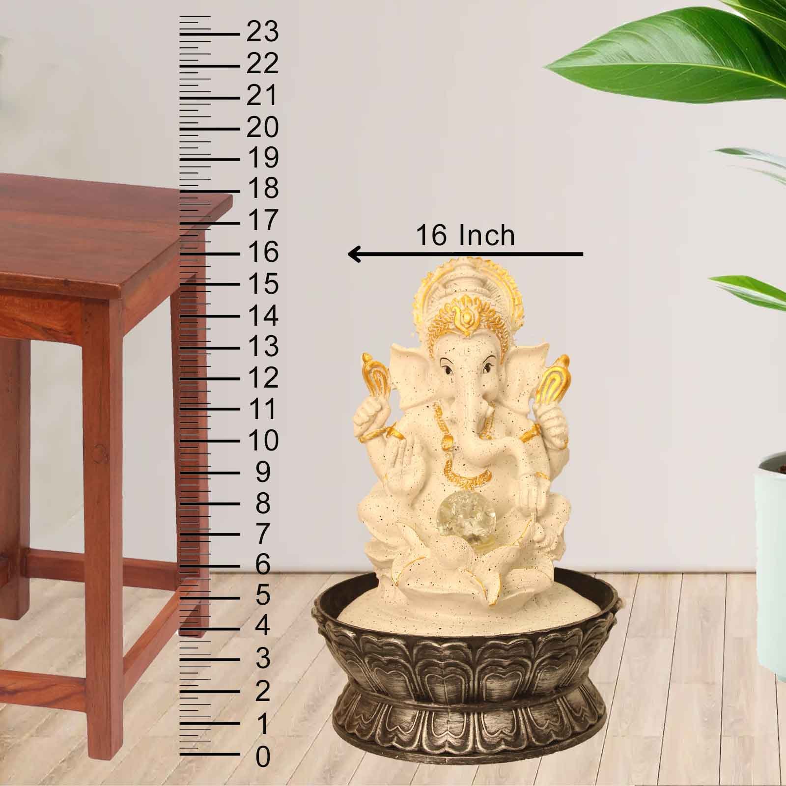 Blessing Ganesha on Lotus Water Fountain for home indoor With Led Light & Crystal Ball - sandstone Finish 41 cm G57GX0053WGDMX