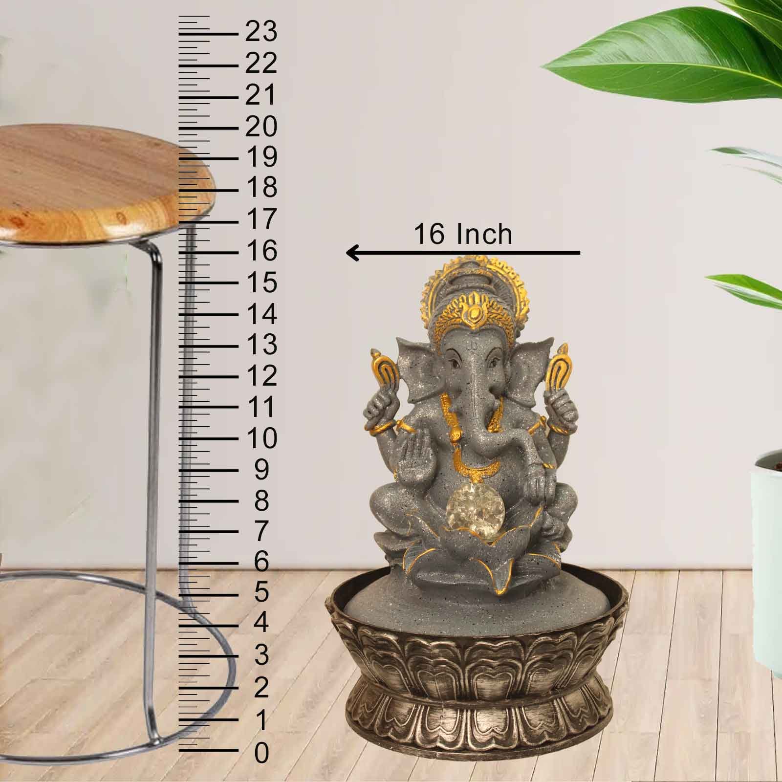Blessing Ganesha on Lotus Water Fountain showpiece With Led Light & Crystal Ball - sandstone Finish 41 cm G57GX0053FGDMX
