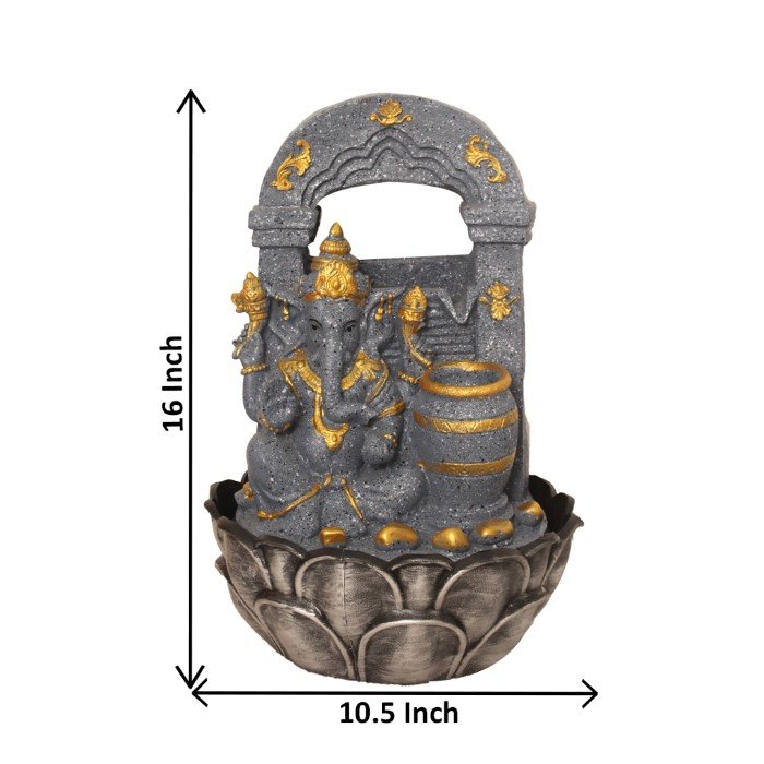 Ashirwad Ganesh corner waterfall home decor With Led Light - Metalic Antique Fin...