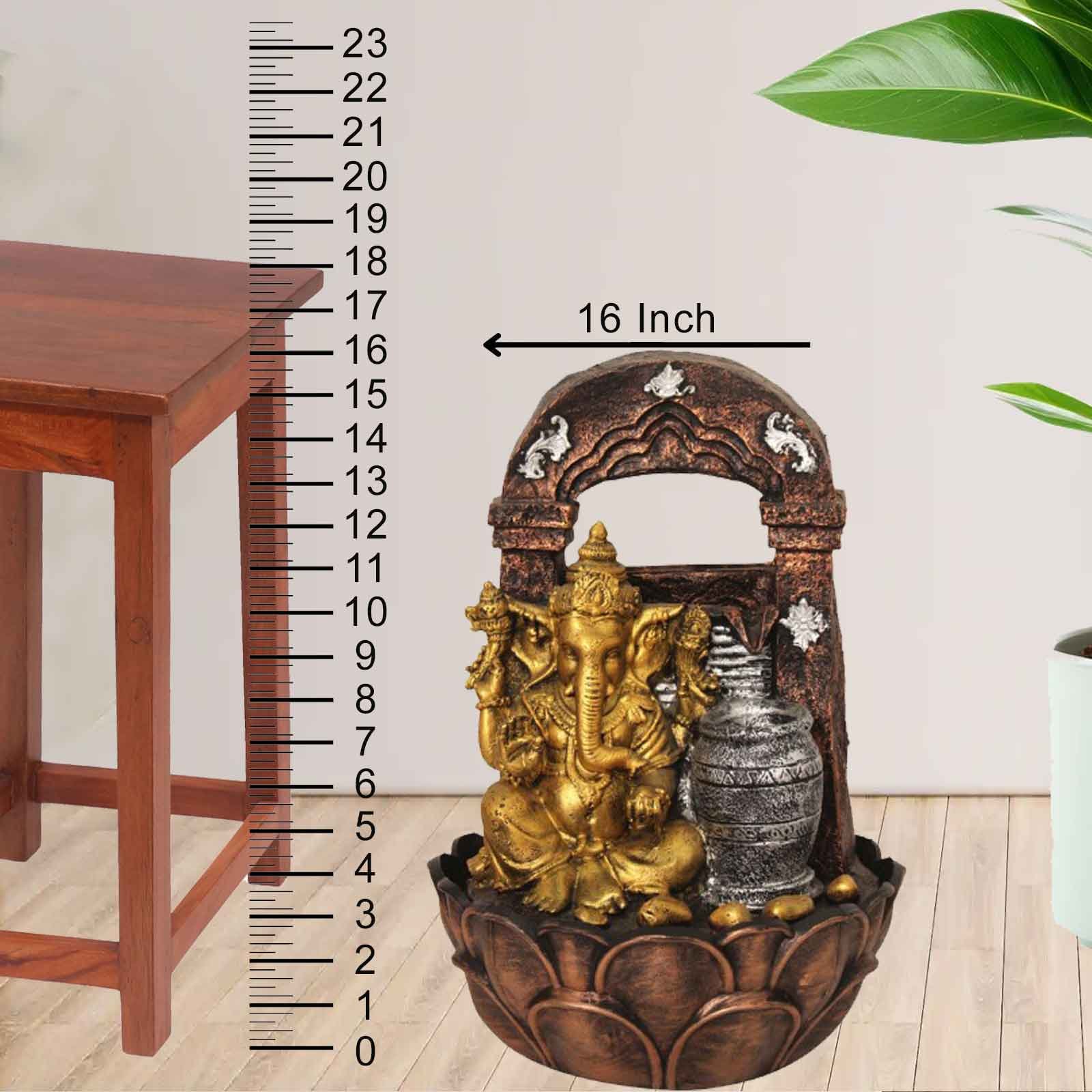 Diya Ganesh water fountain for home indoor With Led Light - Metalic Antique Fini...