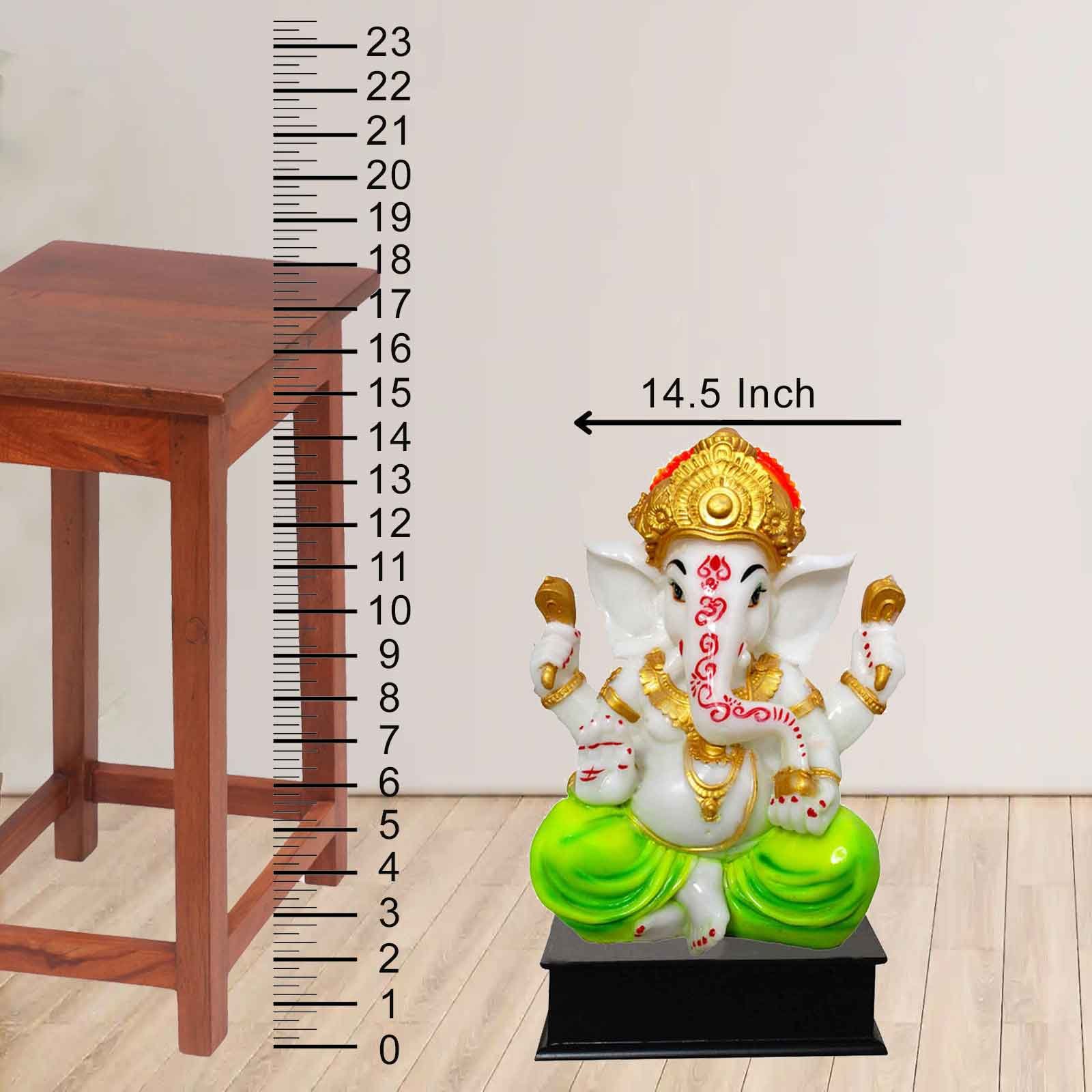 Blessing Ganpati murti for home decoration Marble Look with Wooden Base 37 cm G57GW1324WHCGX