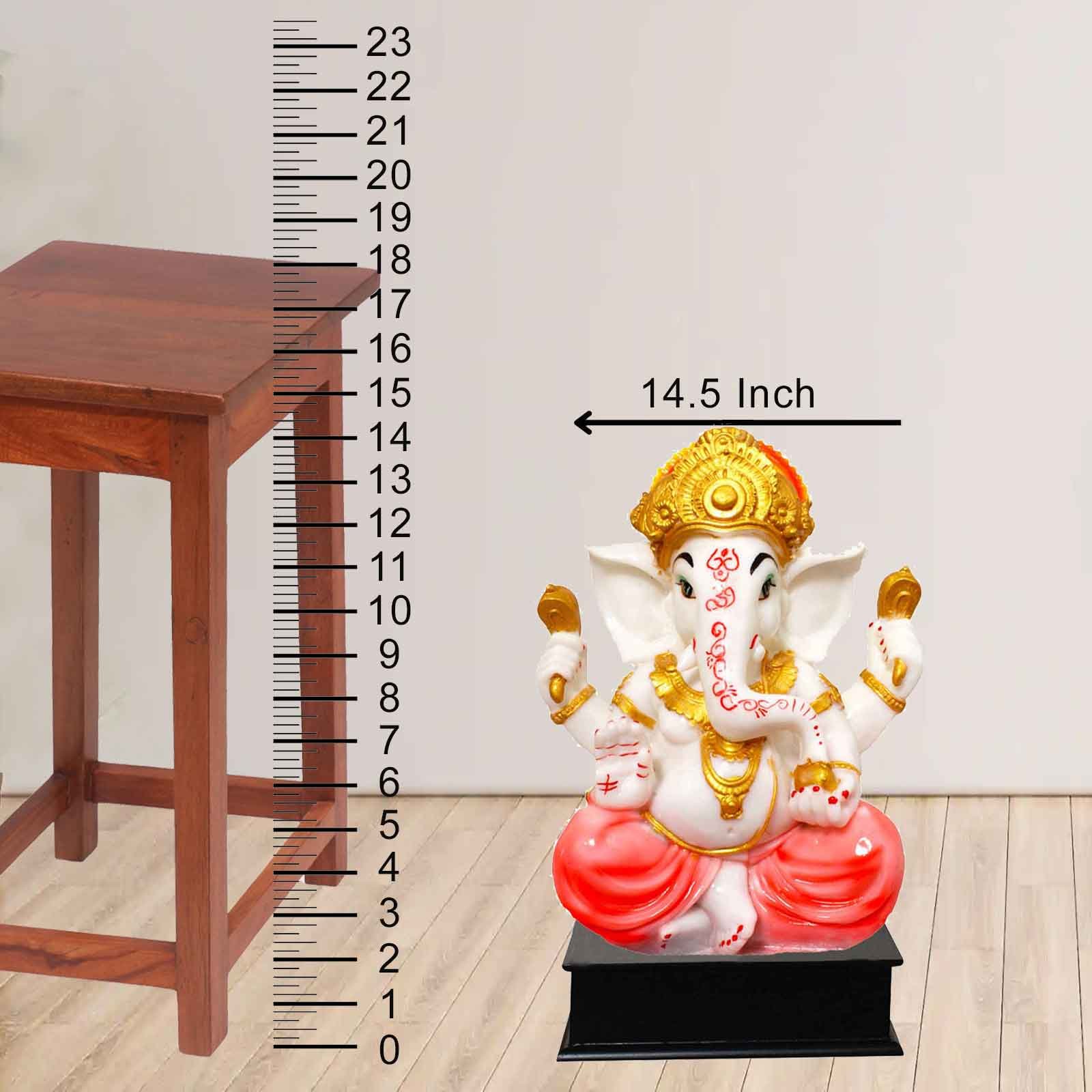 Blessing Ganpati statue for pooja room Marble Look with Wooden Base 37 cm G57GW1324WOCGX