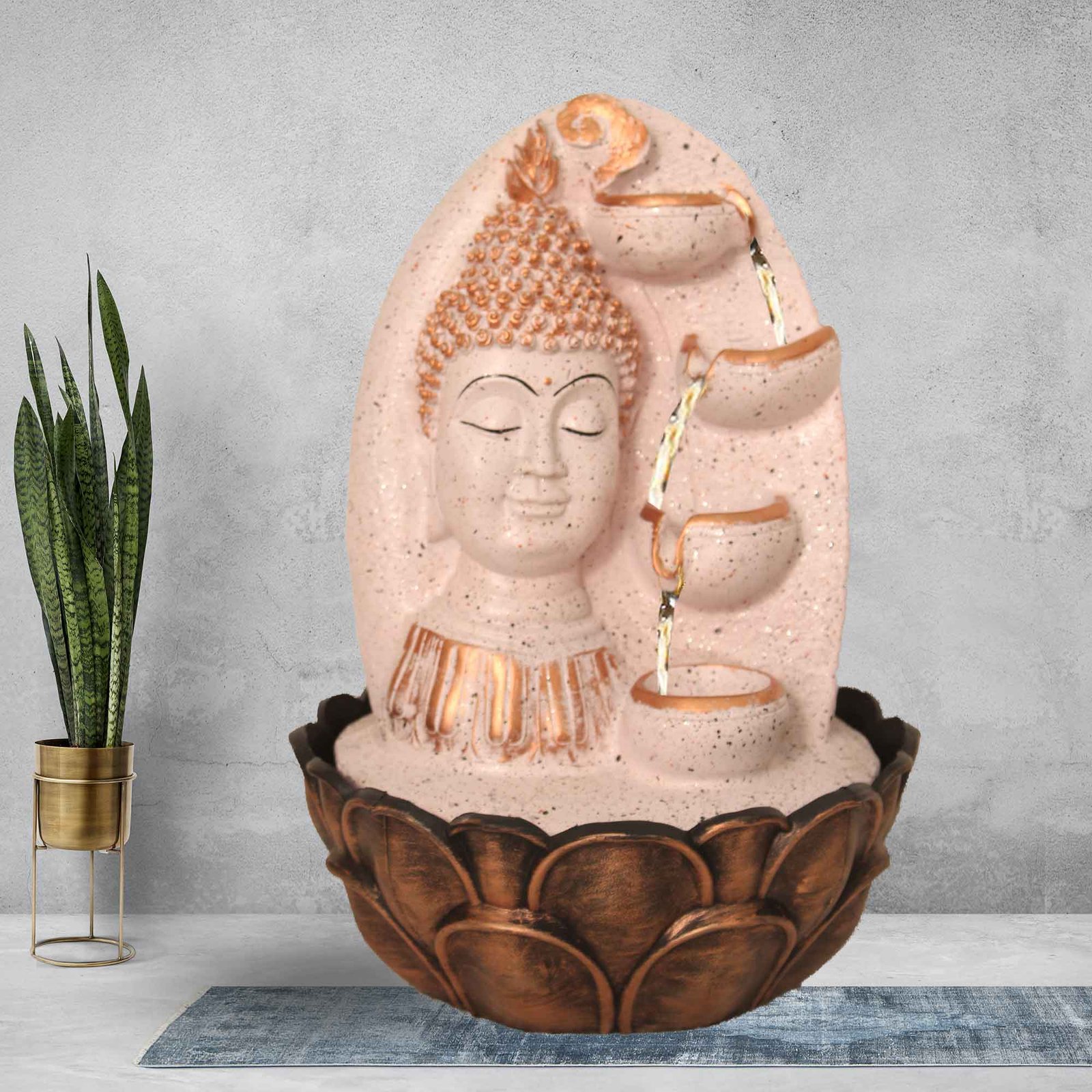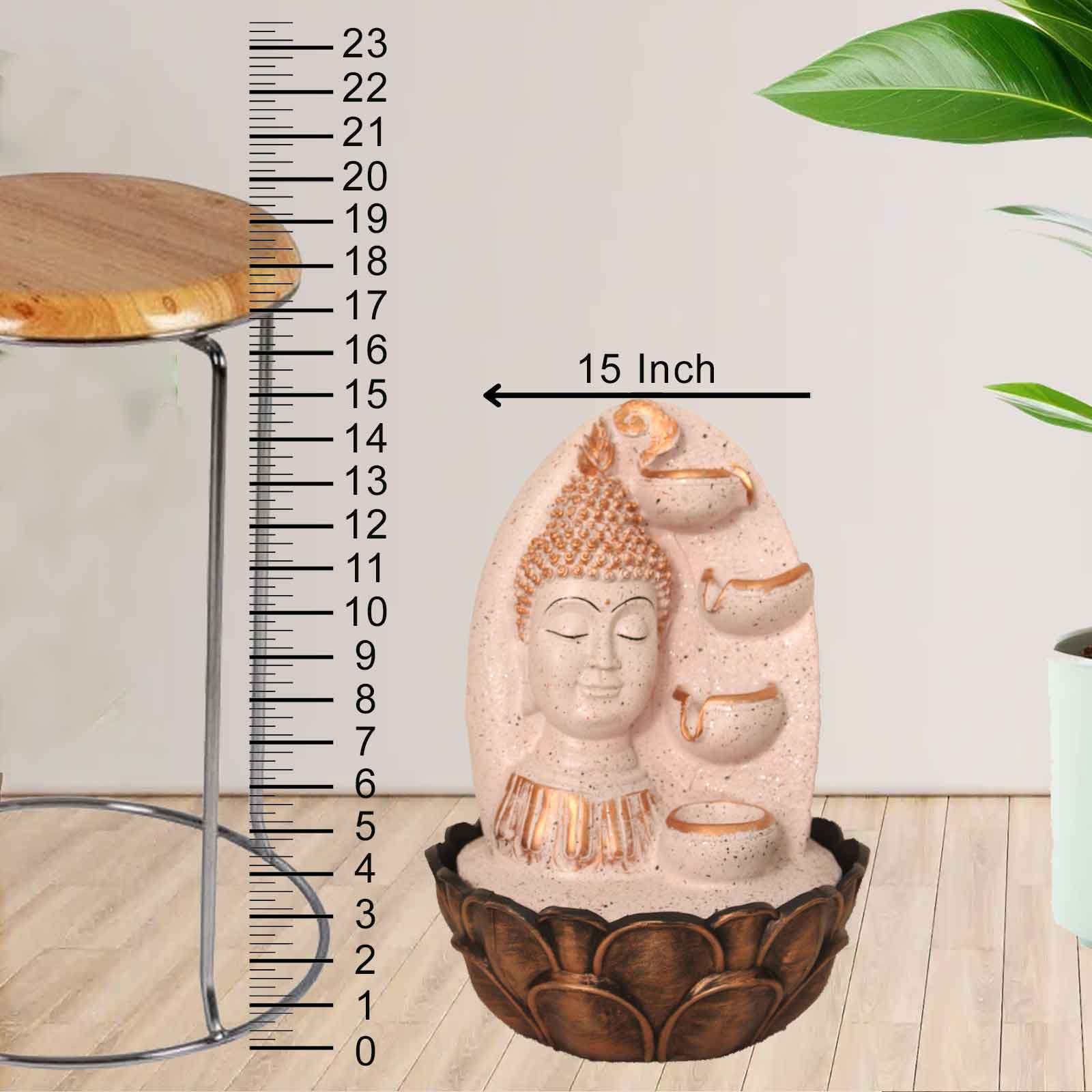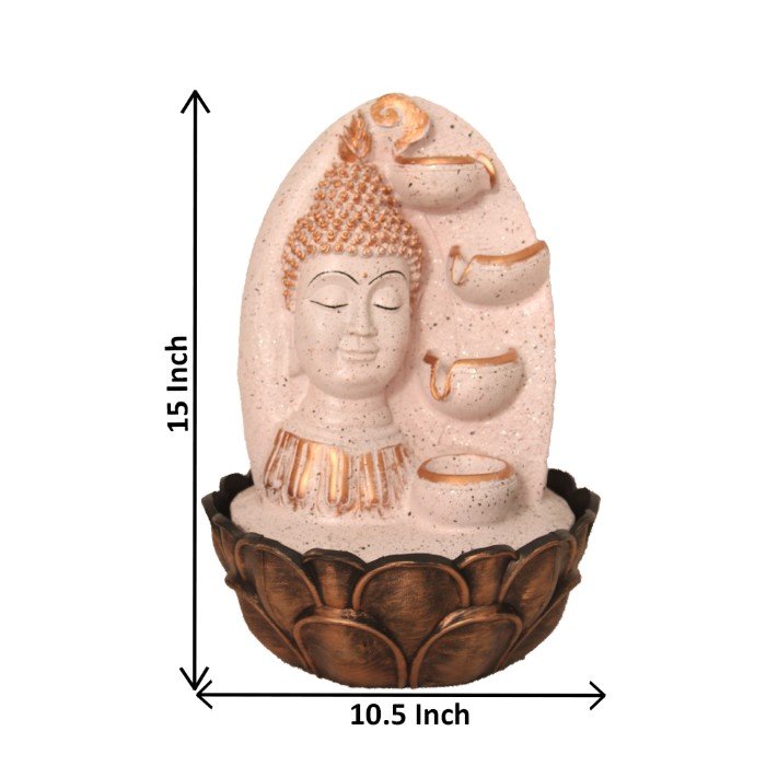 Floral Art Buddha water fountain for living room With Led Light - Metalic Antiqu...