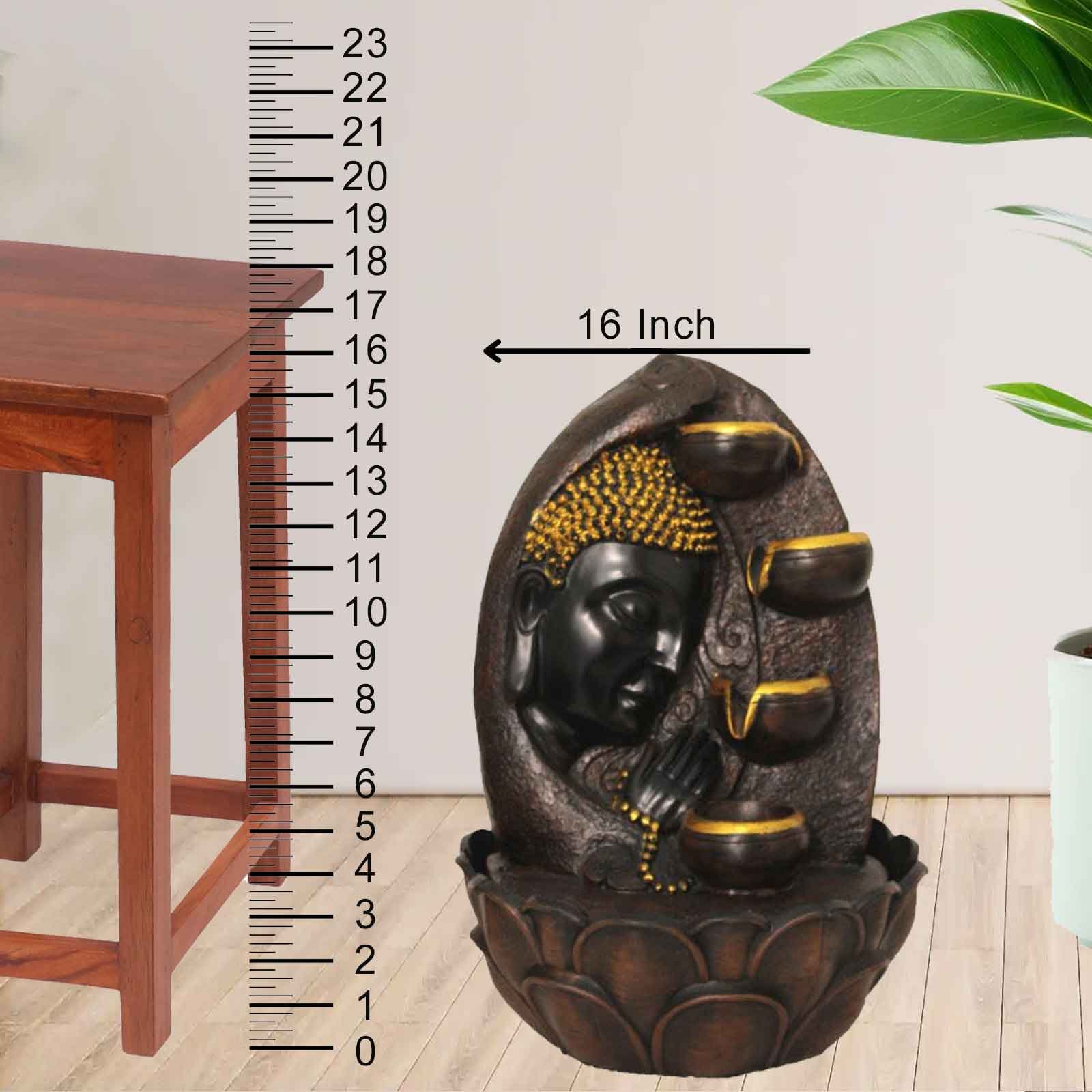 Buddha Face with Diyas showpiece water fountain With Led Light - Metalic Antique Finish 41 cm G57GX0040AGAMX