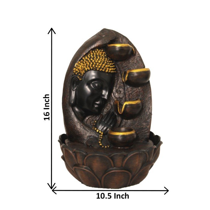 Lord Decorative Buddha Face indoor water fountain is a beautiful showpiece for home decor. This decorative buddha indoor water fountain not only looks great but also brings positivity to your space. Sound effect of water fountain helps create a positive and harmonious environment. As a home decorative water fountain, it adds a touch of elegance and peace to your living space. This Lord Buddha Face also makes for a wonderful decorative gift item for home decoration, ideal for housewarmings or special occasions. An indoor water fountain is best decoration and thoughtful gift. Whether placed in a living room, home, office, showroom, restaurant, hotel and wedding hall, the gentle sound of flowing water can enhance the beauty of area. As a gift, an indoor water fountain is not only visually appealing but also symbolizes harmony and balance. Water fountain is best ideal decorative gift choice as birthday, housewarming, office / shop inauguration, New Year, Wedding, Corporate Diwali gifts or any occasion.