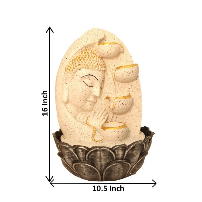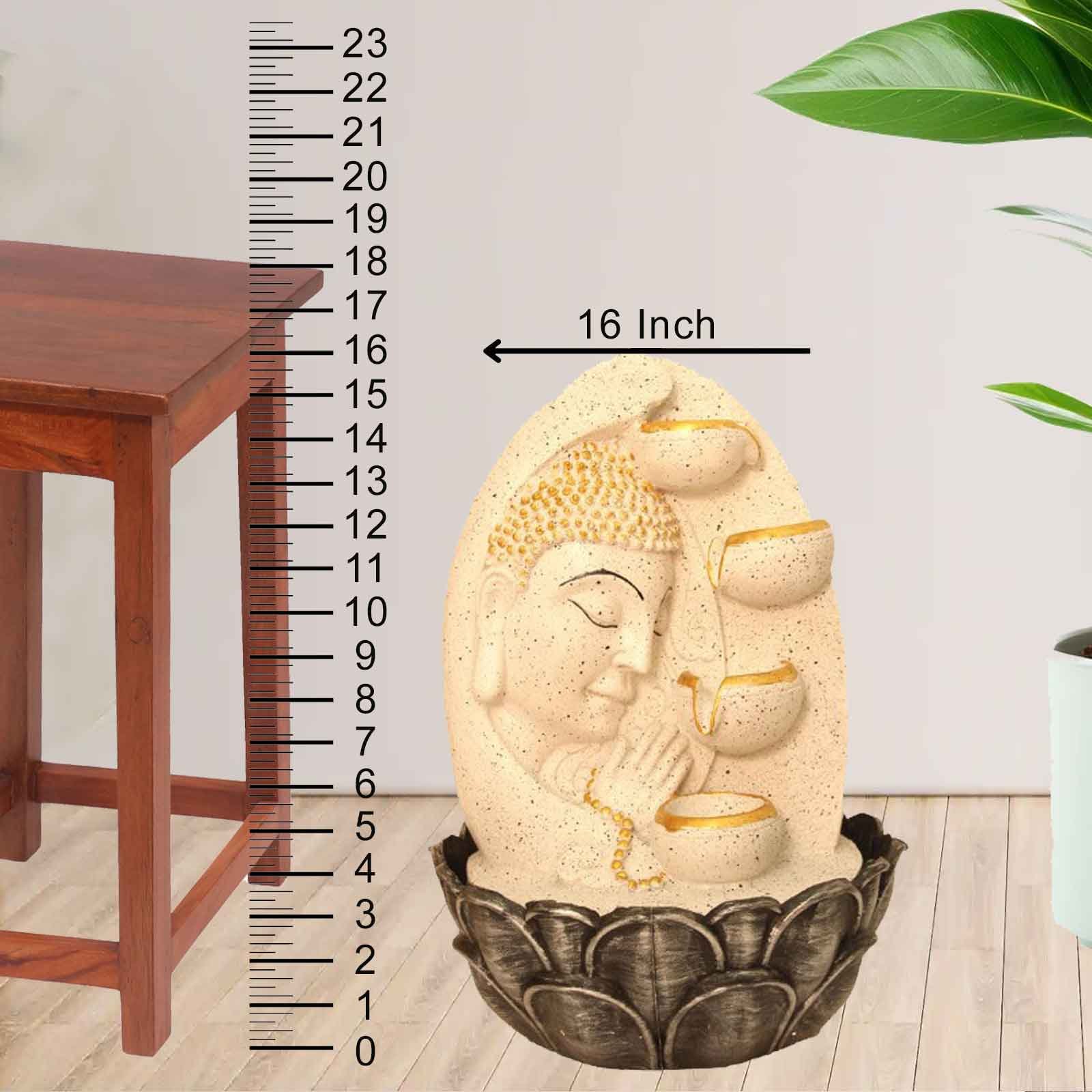 Buddha Face with Diyas Vastu Showpiece water fountain for home decor With Led Light - sandstone Finish 41 cm G57GX0040WGDMX