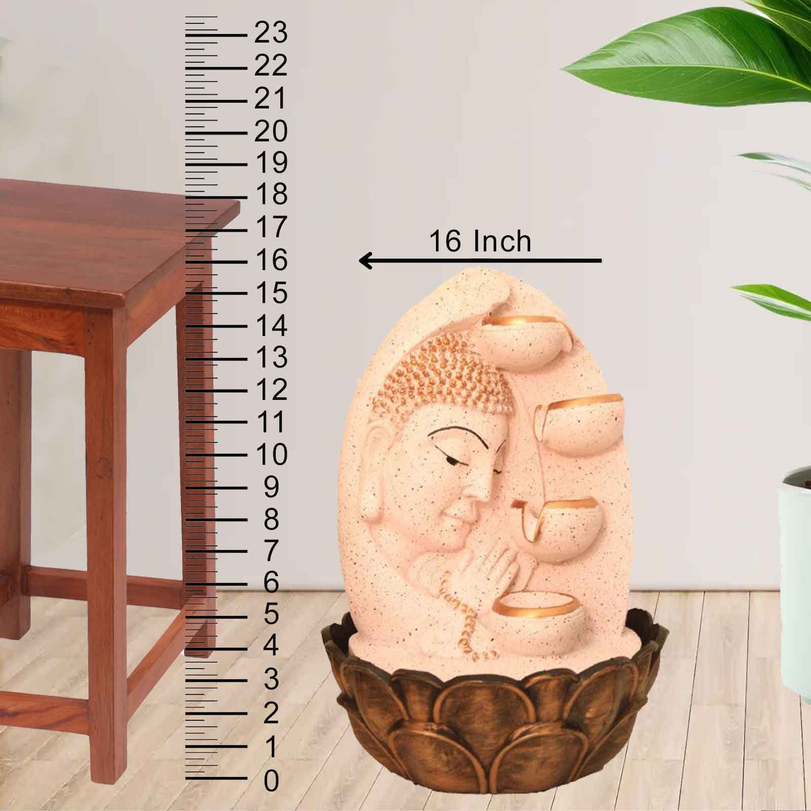 Buddha Face with Diyas Vastu Showpiece water fountain for room With Led Light - sandstone Finish 41 cm G57GX0040PCDMX
