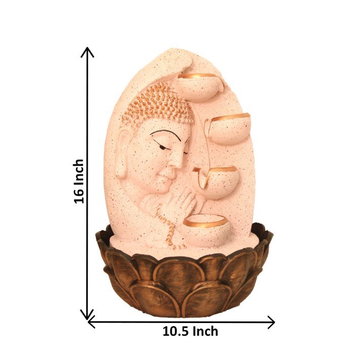 Floral Art Buddha water fountain for living room With Led Light - Metalic Antiqu...