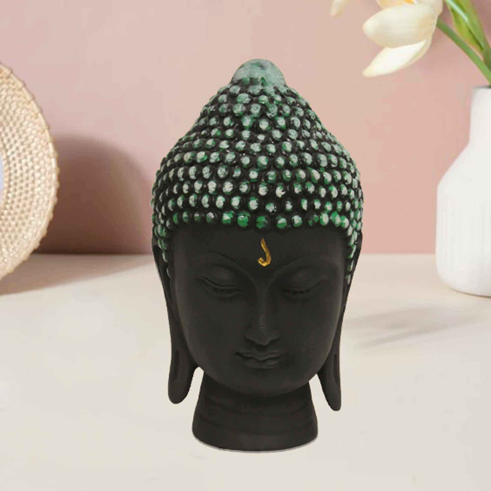 Make in India Buddha Head is made by professional artisans using high quality row material. Great look with unfadable color. Showpiece direct from factory at wholesale price This Showpiece is easily cleanable by wet/Dry Cotton Cloth.