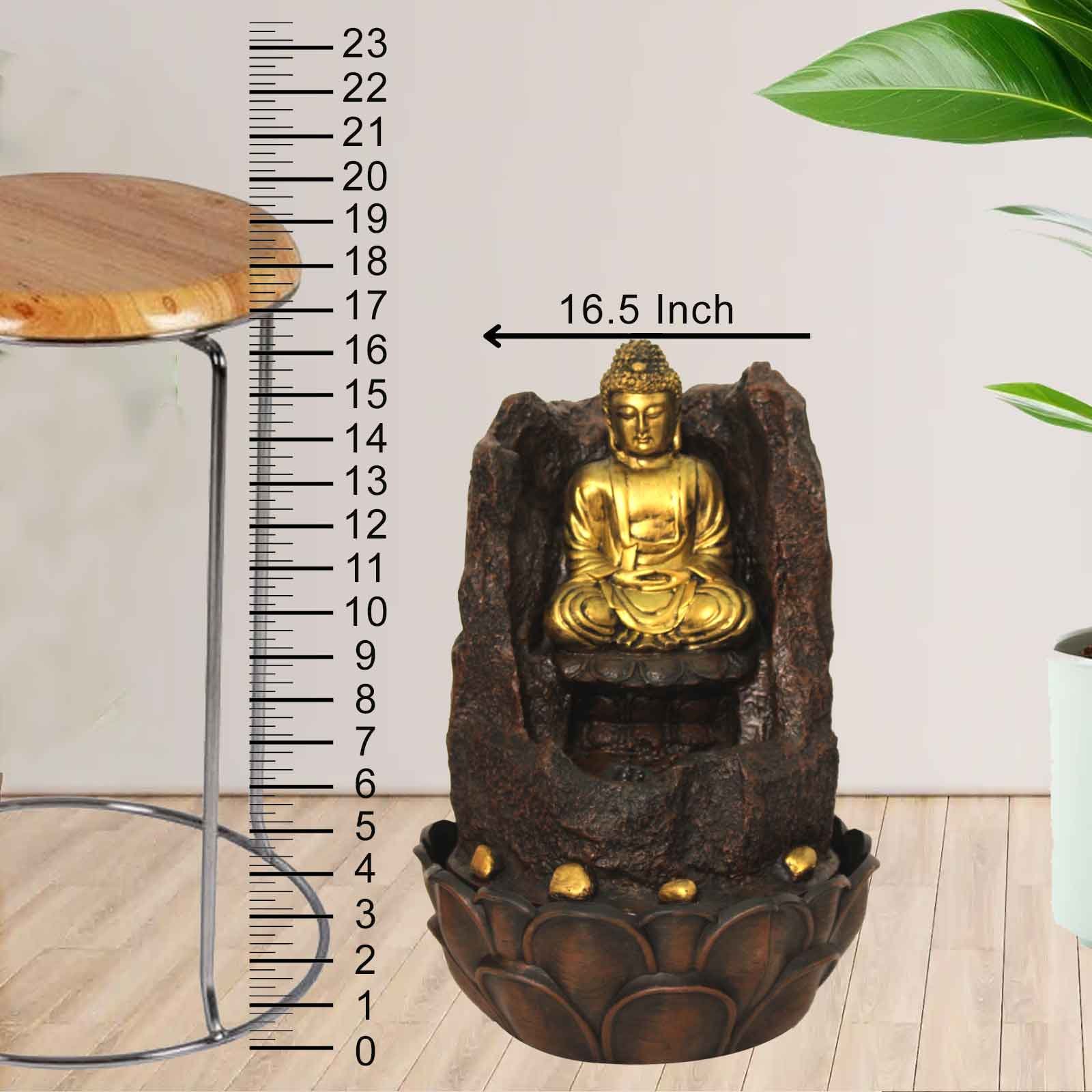 Buddha Sitting on Pahad tabletop water fountain for home With Led Light - Metalic Antique Finish 42 cm G57GX0199AGAMX