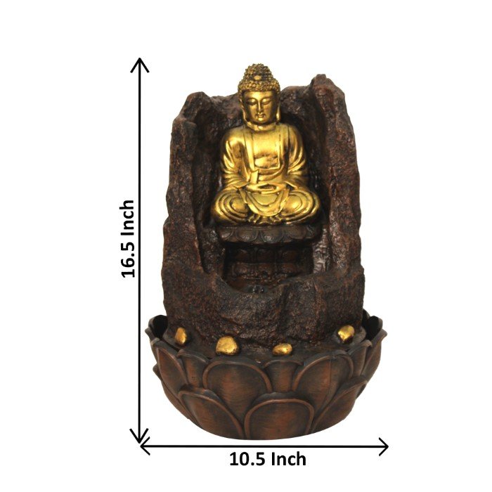 Sitting Buddha on Pahad indoor water fountain is a beautiful showpiece for home decor. This indoor water fountain not only looks great but also brings positivity to your space. Sound effect of water fountain helps create a positive and harmonious environment. As a home decorative water fountain, it adds a touch of elegance and peace to your living space. This sitting buddha water fountain also makes for a wonderful decorative gift item for home decoration, ideal for housewarmings or special occasions. An indoor water fountain is best decoration and thoughtful gift. Whether placed in a living room, home, office, showroom, restaurant, hotel and wedding hall, the gentle sound of flowing water can enhance the beauty of area. As a gift, an indoor water fountain is not only visually appealing but also symbolizes harmony and balance. Water fountain is best ideal decorative gift choice as birthday, housewarming, office / shop inauguration, New Year, Wedding, Corporate Diwali gifts or any occasion.