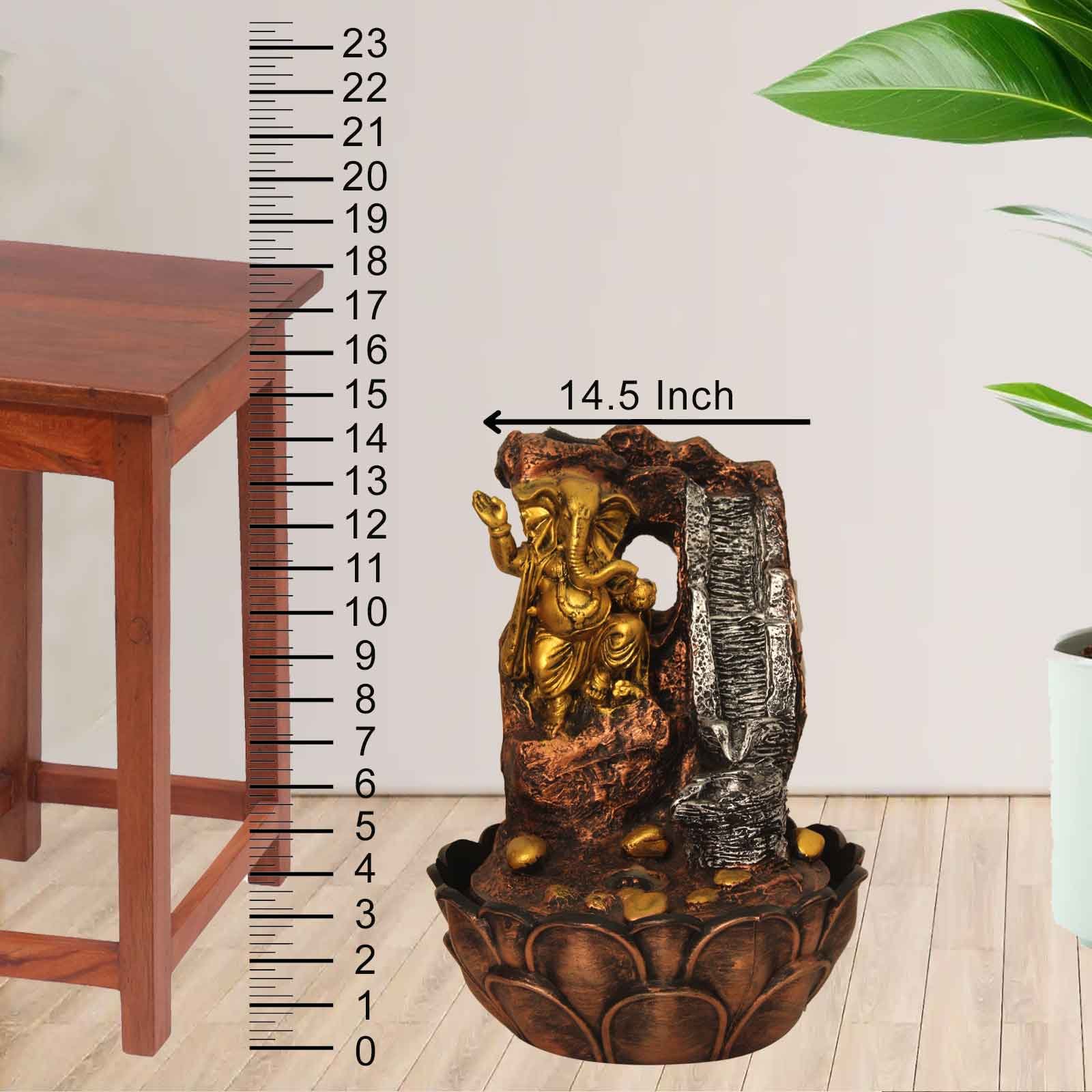 Ashirwad Ganesh corner fountain indoor With Led Light - sandstone Finish 25 cm G...