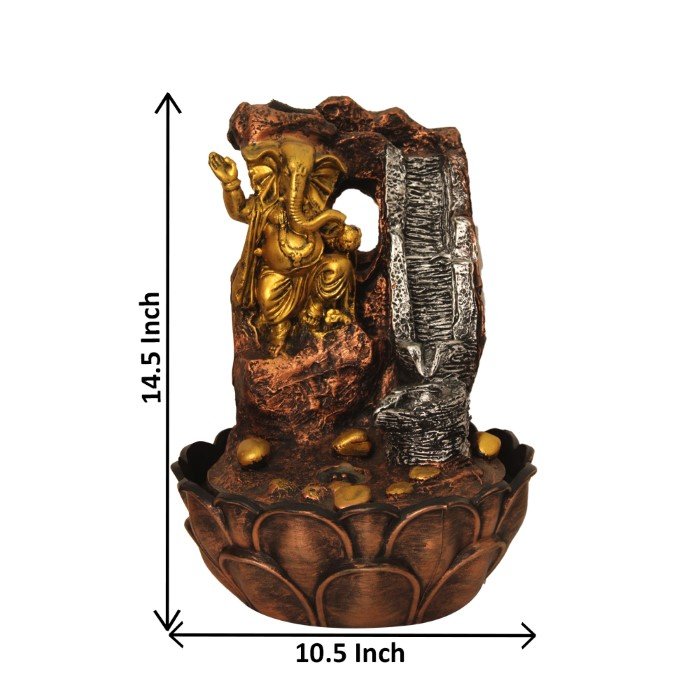 Ganpati Diya interior water fountain With Led Light - Metalic Antique Finish 25 ...