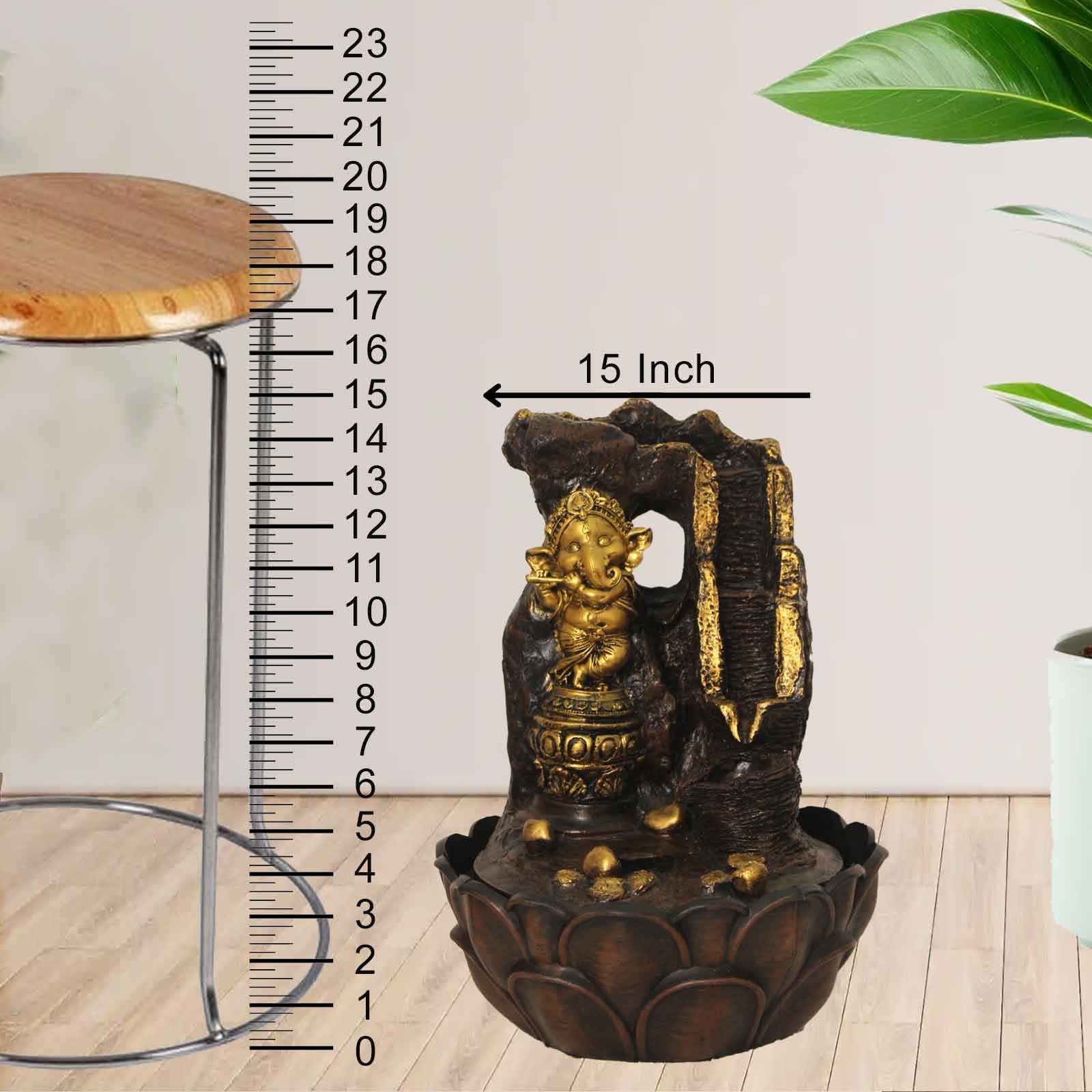 Dancing Ganesha waterfall fountain for home With Led Light - Metalic Antique Finish 38 cm G57GX0048AGAMX