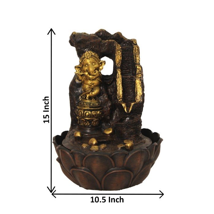 Decorative Ganpati water fountain statues With Led Light - Metalic Antique Finis...