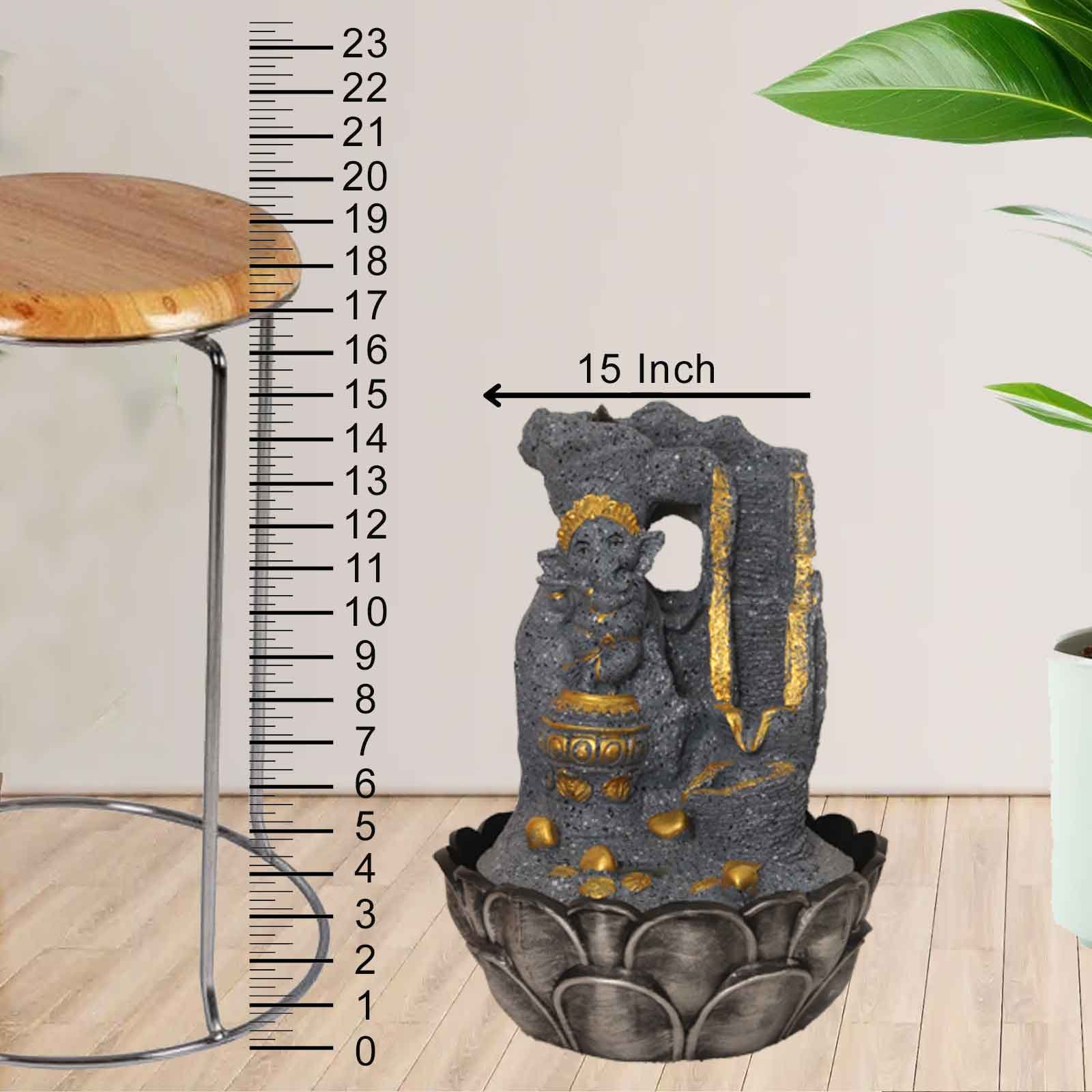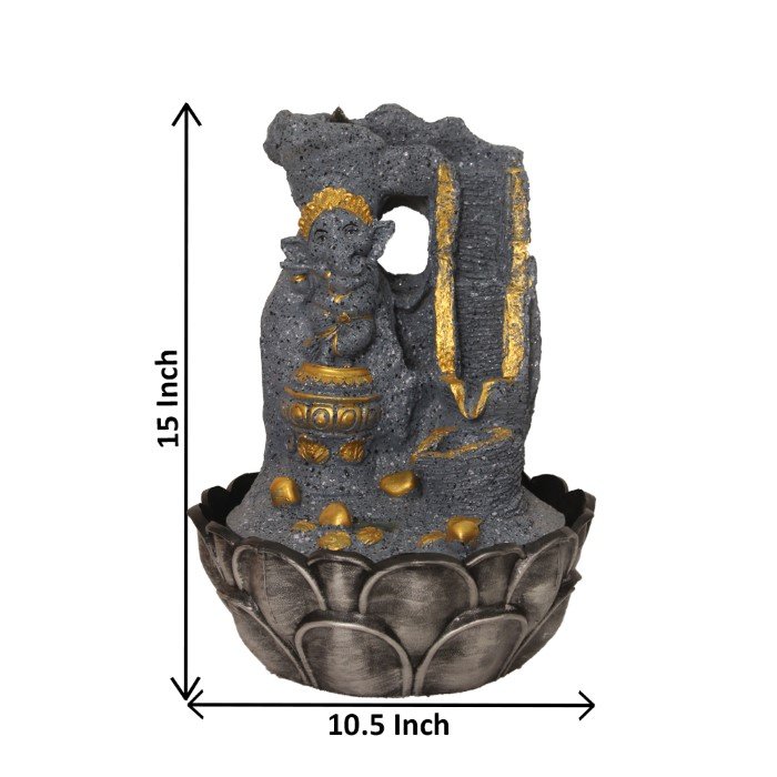 Diya Ganesh house water fountain With Led Light - Metalic Antique Finish Big Siz...