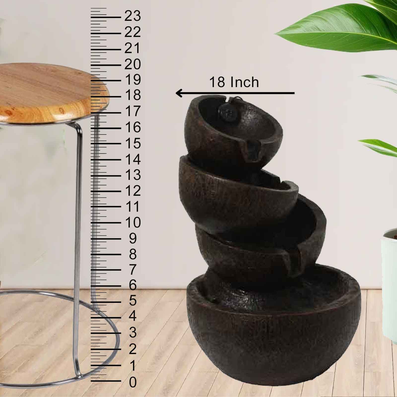 Decorative 4 Step Bowl fountain showpiece With Led Light - Metalic Antique Finish 46 cm G57GX0804A