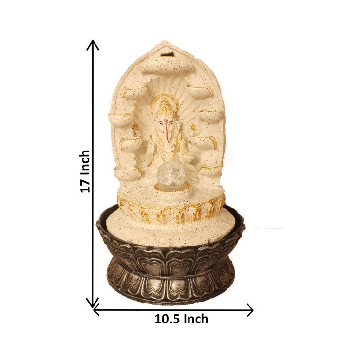 Decorative Diya Ganesh decorative water fountain With Led Light & Crystal Ball - sandstone Finish 43 cm G57GX0525WGDMX