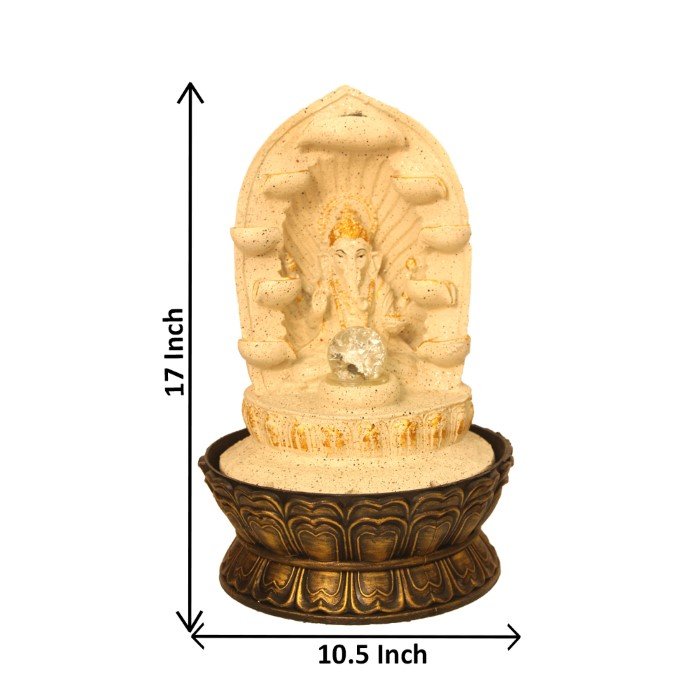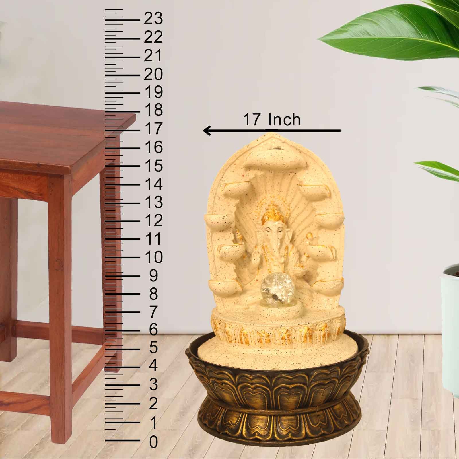 Decorative Diya Ganesh desktop fountain Waterfall With Led Light & Crystal Ball - sandstone Finish 43 cm G57GX0525IGDMX