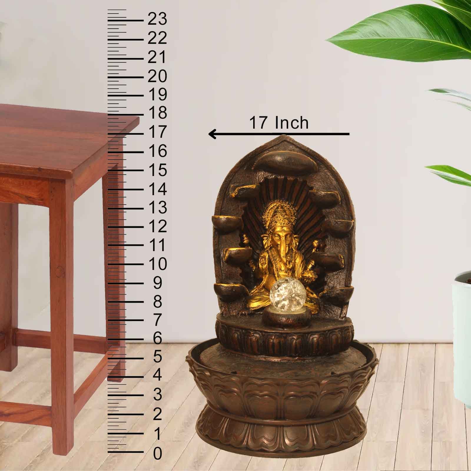 Decorative Diya Ganesh desktop water fountain With Led Light & Crystal Ball - Metalic Antique Finish 43 cm G57GX0525AGAMX
