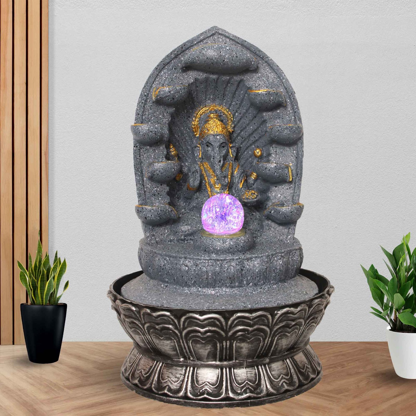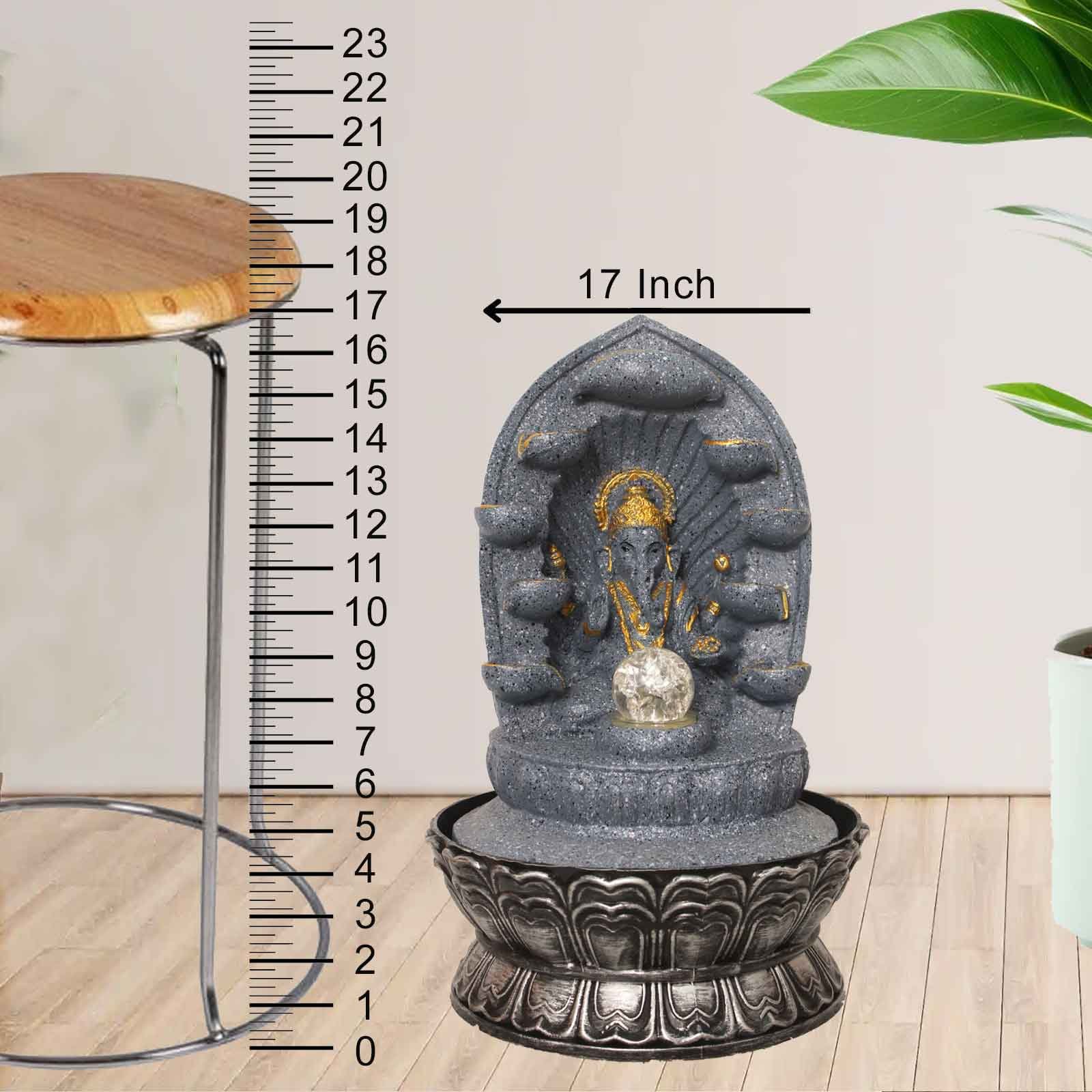 Decorative Diya Ganesh desktop water fountain With Led Light & Crystal Ball - sandstone Finish 43 cm G57GX0525FGDMX