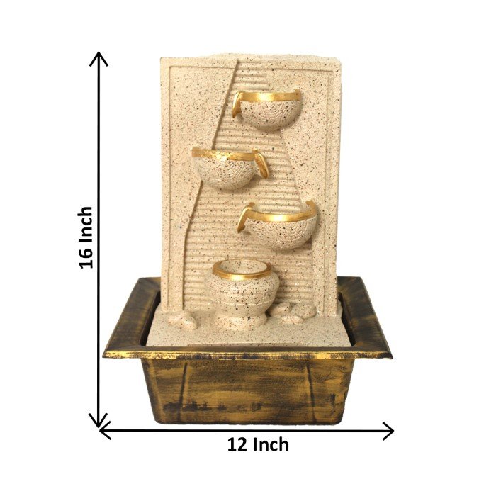 4 Tier Handicraft Diya indoor water fountain is a beautiful showpiece for home decor. This indoor water fountain not only looks great but also brings positivity to your space. Sound effect of water fountain helps create a positive and harmonious environment. As a home decorative water fountain, it adds a touch of elegance and peace to your living space. This 4 Tier Handicraft Diya also makes for a wonderful decorative gift item for home decoration, ideal for housewarmings or special occasions. An indoor water fountain is best decoration and thoughtful gift. Whether placed in a living room, home, office, showroom, restaurant, and Hotel, the gentle sound of flowing water can enhance the beauty of area. As a gift, an indoor water fountain is not only visually appealing but also symbolizes harmony and balance. Water fountain is best ideal decorative gift choice as birthday, housewarming, office / shop inauguration, New Year, Wedding, Corporate Diwali gifts or any occasion.