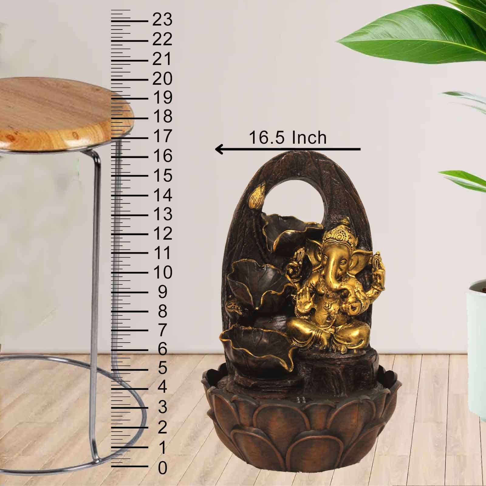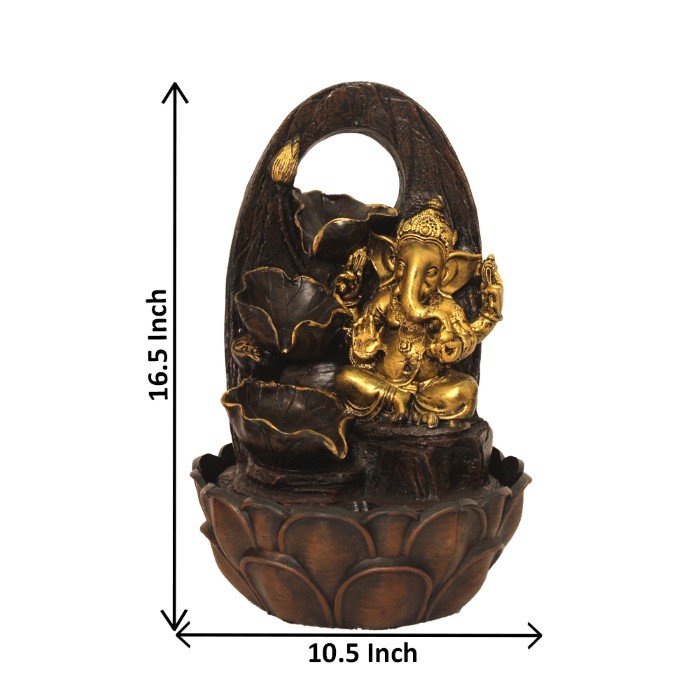 Polyresin Lord Ganesha waterfall fountain With Led Light - Metalic Antique Finis...