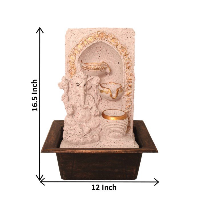 Lord Ganesha with Floral Shaped small modern water feature With Led Light - sand...