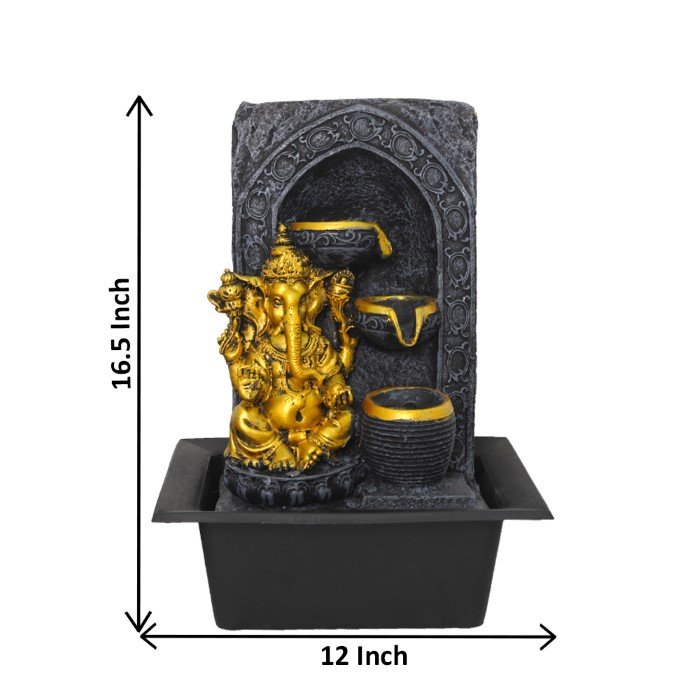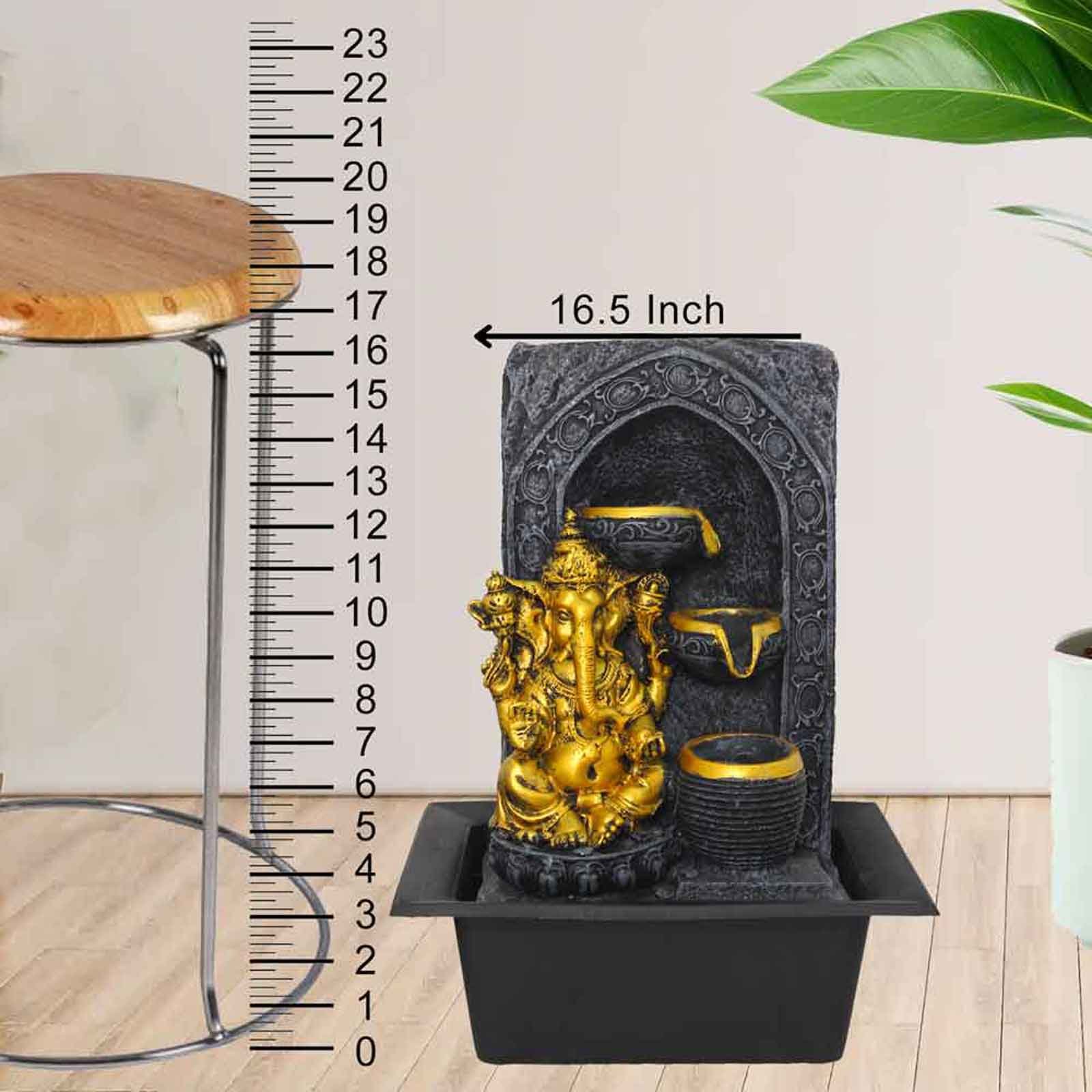 Ganpati Diya inhouse water fountain With Led Light - Metalic Antique Finish 25 c...