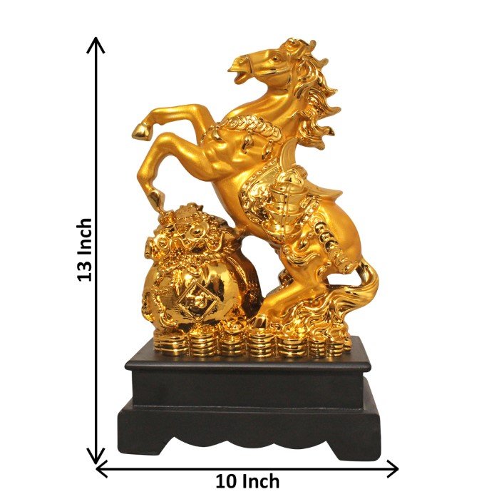 Make in India Decorative Gold Plated Horse is made by professional artisans using high quality row material. Great look with unfadable color. Showpiece direct from factory at wholesale price This Showpiece is easily cleanable by wet/Dry Cotton Cloth.