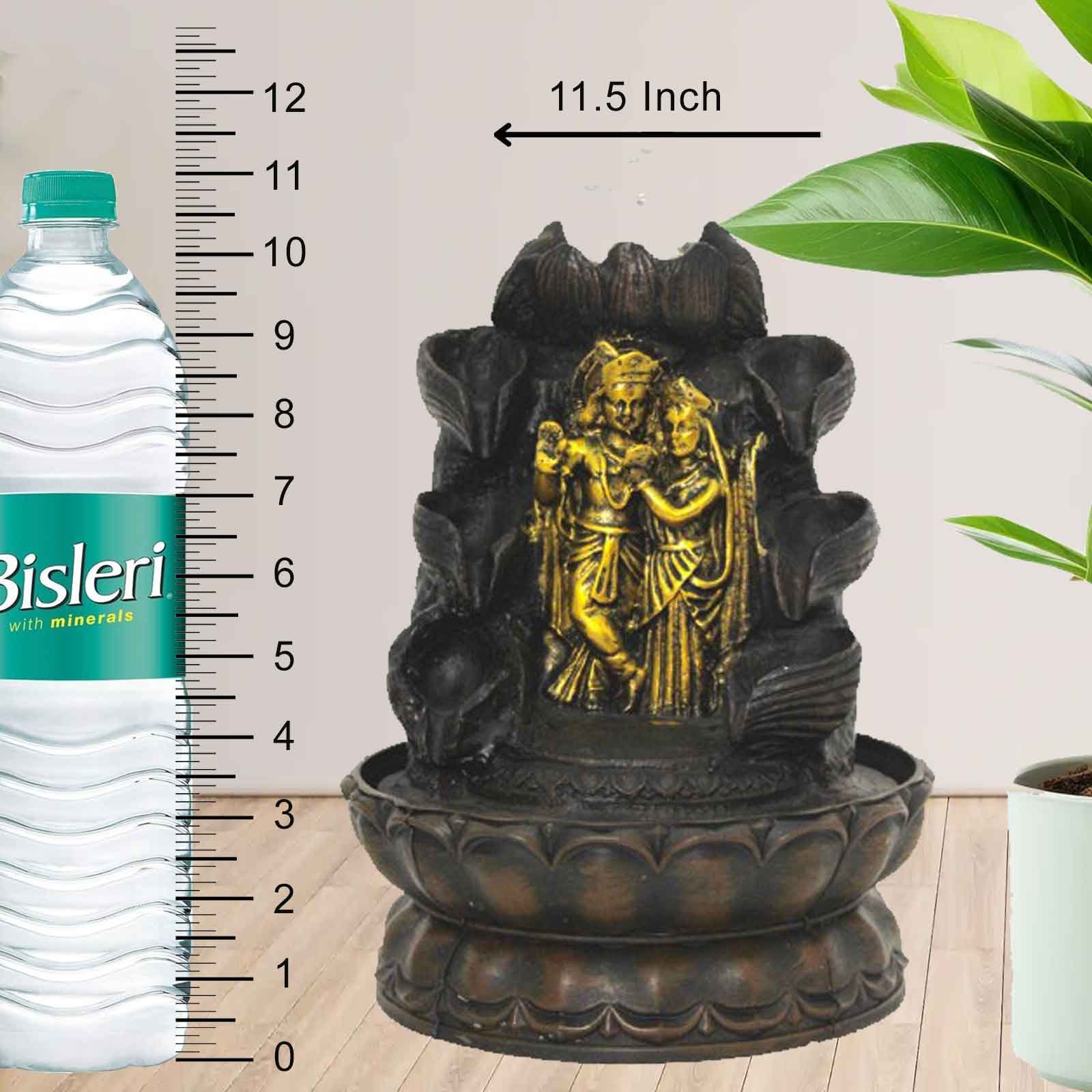 Decorative Radha Krishna balcony water fountain Small Size With Led Light & Crystal Ball - Metalic Antique Finish 28 cm G57GX0452AGAMX
