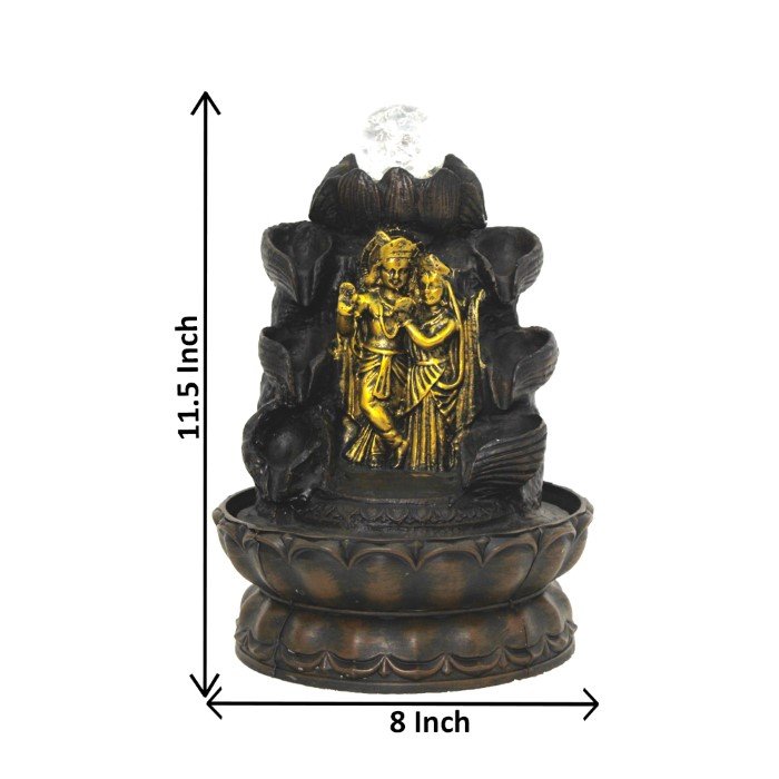 Lord Radha Krishna indoor water fountain is a beautiful showpiece for home decor. This beautiful indoor water fountain not only looks great but also brings positivity to your space. Sound effect of water fountain helps create a positive and harmonious environment. As a home decorative water fountain, it adds a touch of elegance and peace to your living space. This Lord Radha Krishna also makes for a wonderful decorative gift item for home decoration, ideal for housewarmings or special occasions. An indoor water fountain is best decoration and thoughtful gift. Whether placed in a living room, home, office, showroom, restaurant, hotel and wedding hall, the gentle sound of flowing water can enhance the beauty of area. As a gift, an indoor water fountain is not only visually appealing but also symbolizes harmony and balance. Water fountain is best ideal decorative gift choice as birthday, housewarming, office / shop inauguration, New Year, Wedding, Corporate Diwali gifts or any occasion.