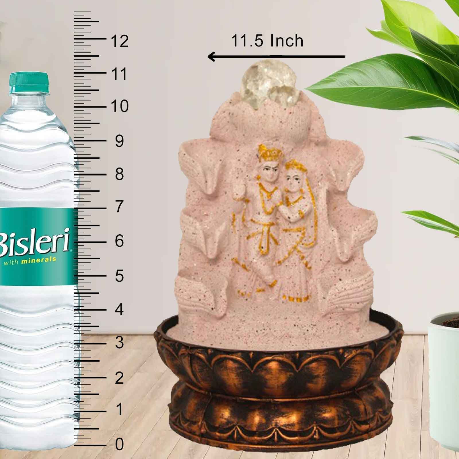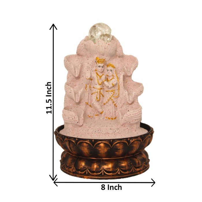 Decorative Radha Krishna waterfall tabletop fountain With Led Light & Crystal Ball - sandstone Finish 29 cm G57GX0452PGDMX