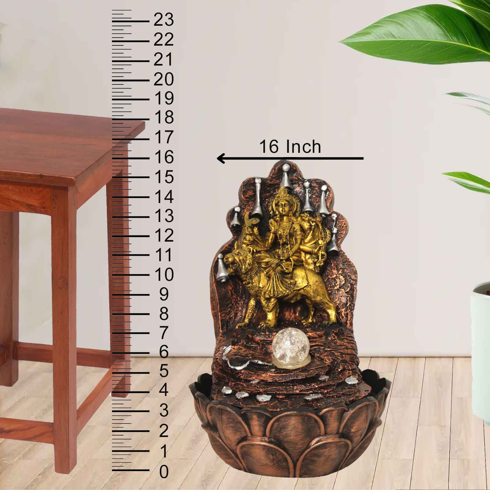 Devi Durga Maa Water Fountain for home decoration With Led Light & Crystal Ball - Metalic Antique Finish 41 cm G57GX0052MGAMX