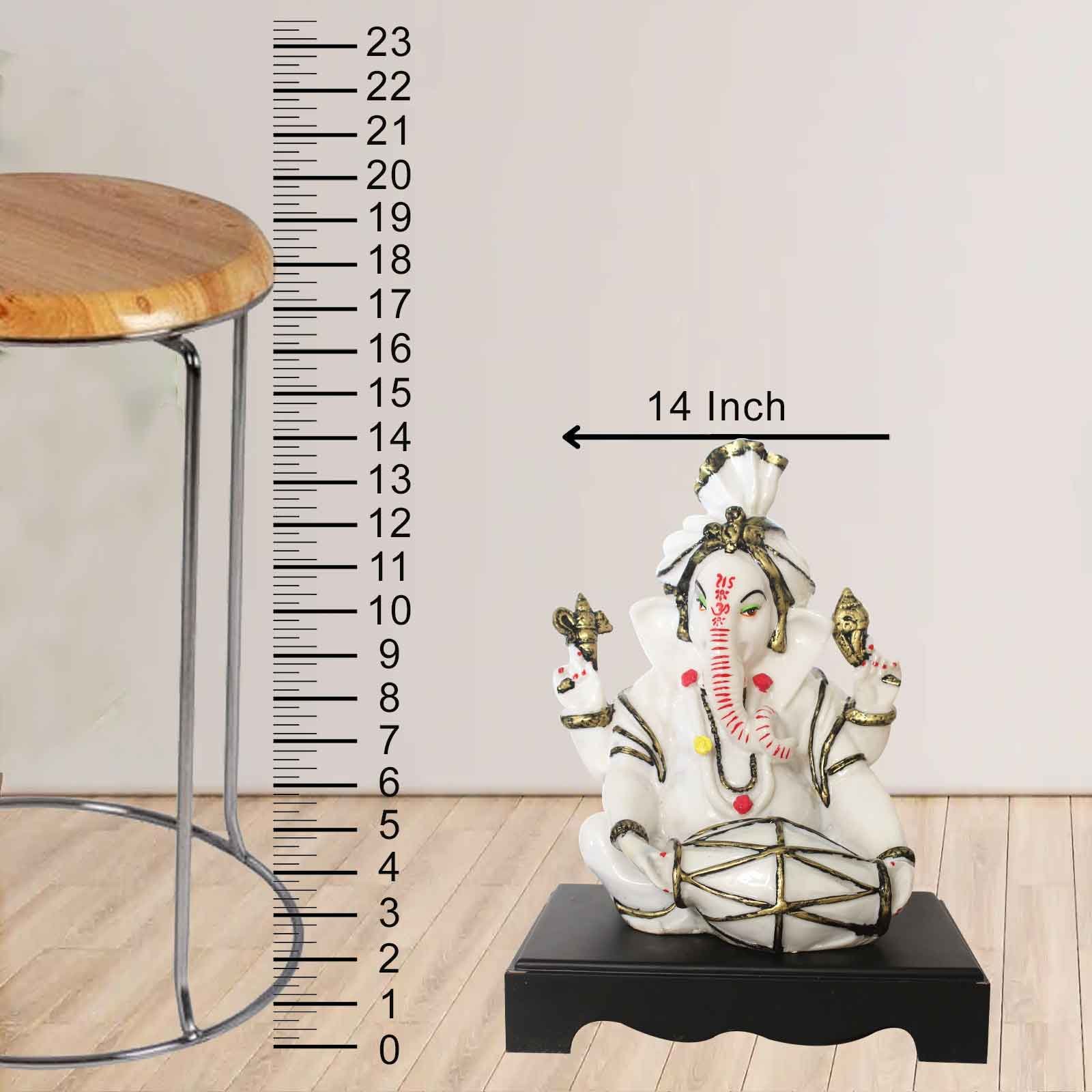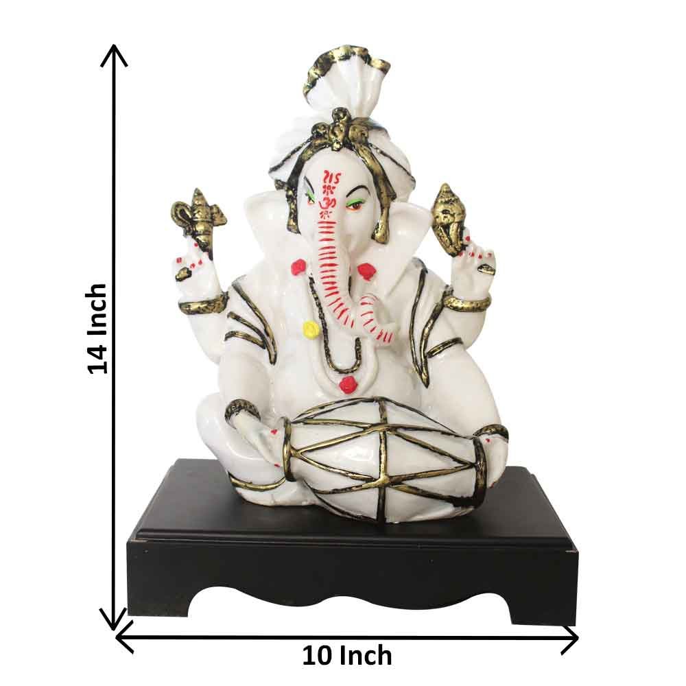 Dholak Ganesha idols for home decoration Marble Look with Wooden Base 36 cm G57GW1270WBCGX