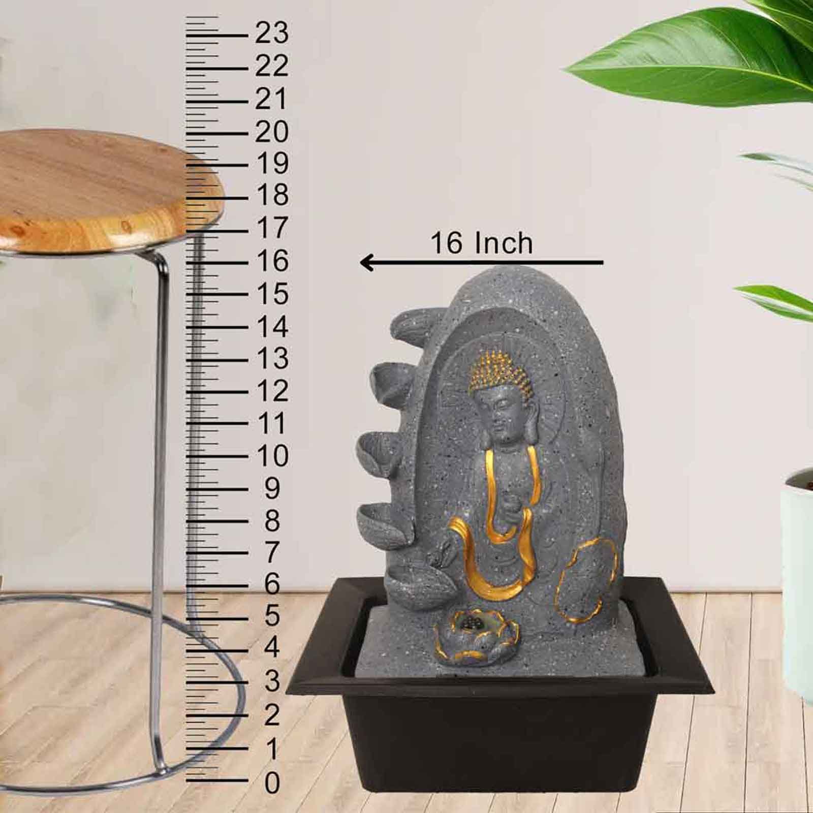 Marble Dust Buddha tabletop waterfall fountain With Led Light - Metalic Antique ...