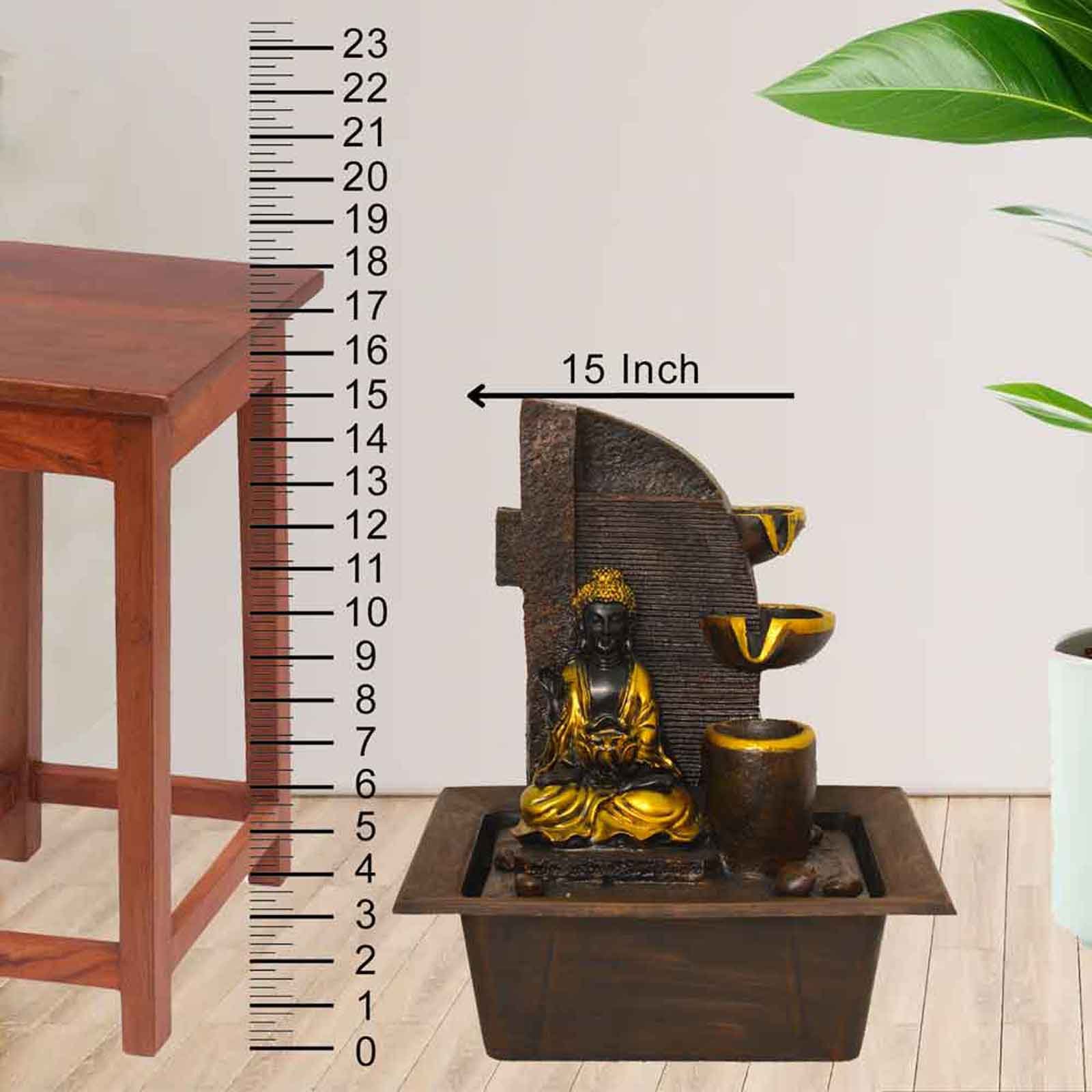 Diya Buddha waterfall showpiece for living room With Led Light - Metalic Antique Finish 38 cm G57GX0207AGAMX