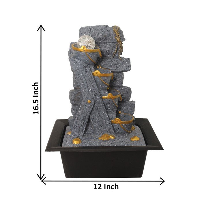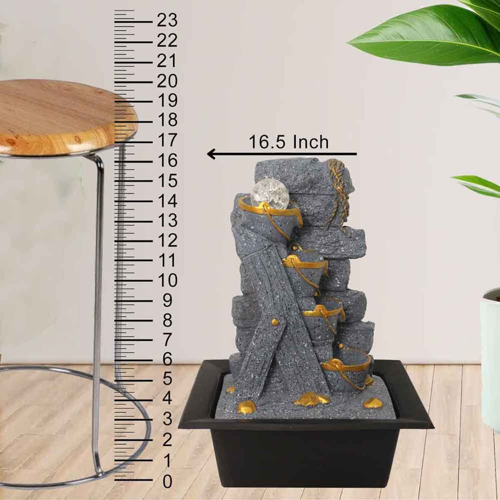Diyas with bucket indoor waterfall for home With Led Light & Crystal Ball - sandstone Finish 42 cm G57GX0313FGDMX
