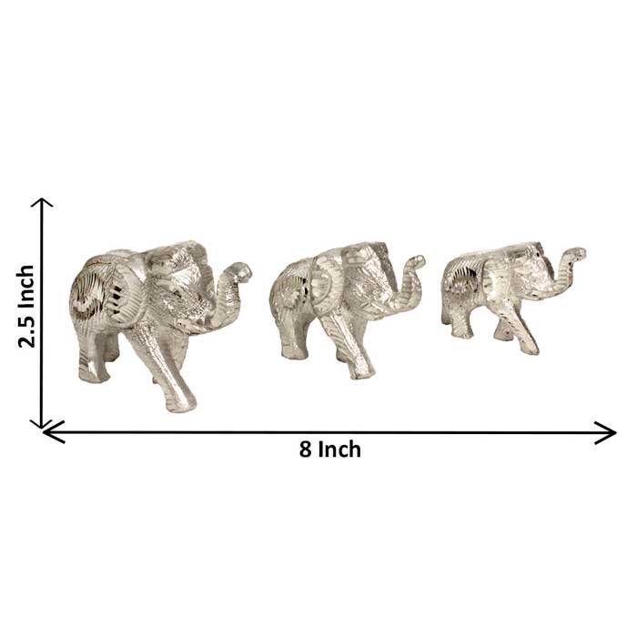 Elephant Family Set Aluminium White Metal Diamond cut 7.5 cm G13GX0098C...