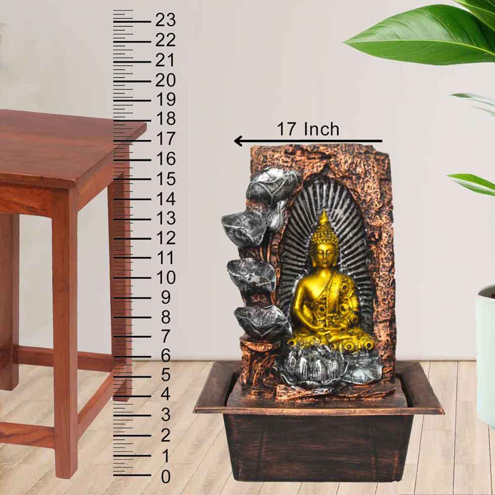 Feng Shui Buddha interior waterfall With Led Light - Metalic Antique Finish 43 cm G57GX0527MGAMX